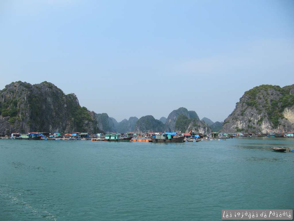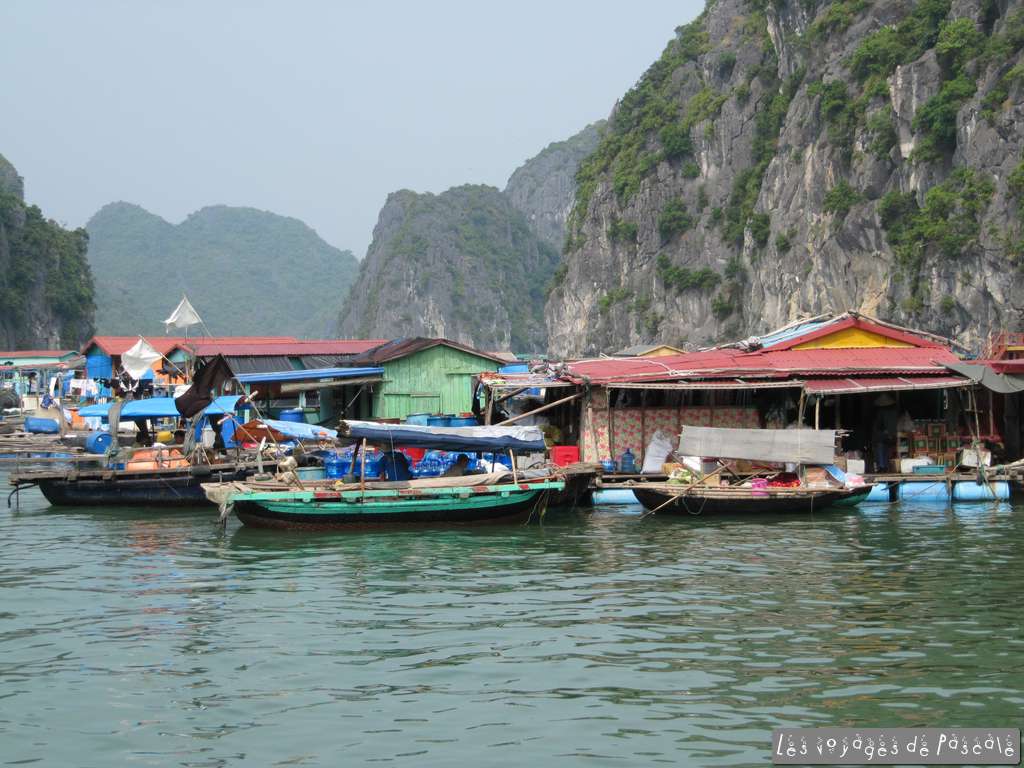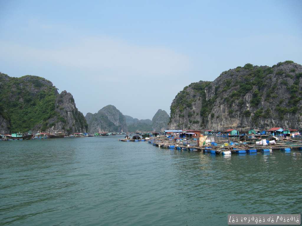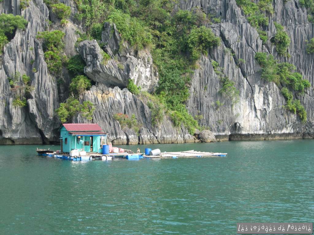 Je viens de regarder tes photos de Cat Ba, elles me laissent un goût très amer. Je m’explique : lorsque je vois la population des villages flottants, j’ai vraiment l’impression que tout ce tourisme moderne ne leur apporte rien ou presque. Ils semblent continuer leur petite vie de pauvres pêcheurs tout simplement à côté de ces grands hôtels fréquentés par ces Blancs qu’ils pensent tous très riches, mais il n’y a pas d’interaction entre les deux hormis le fait d’être photographiés comme des animaux de cirque. Cela me fait un peu penser aux femmes girafes du Triangle d’Or.