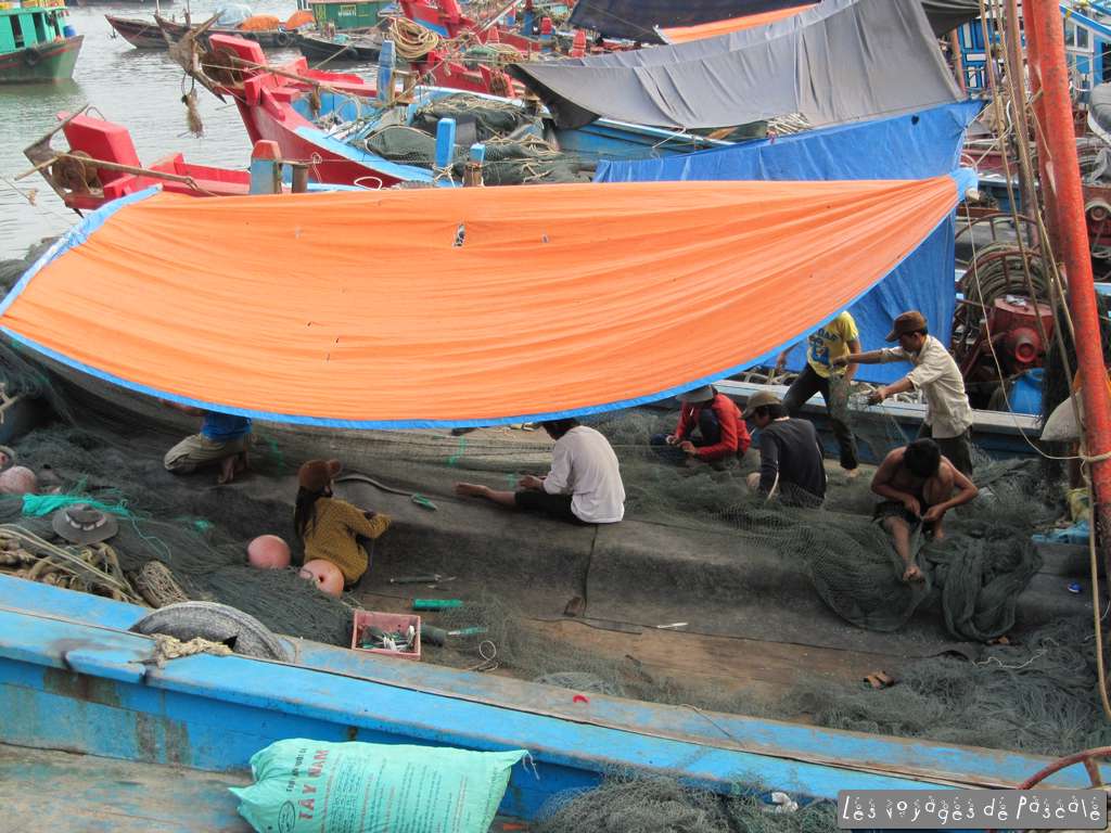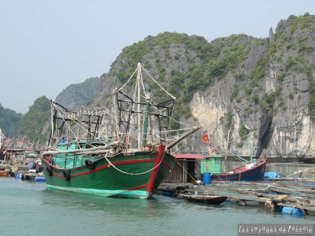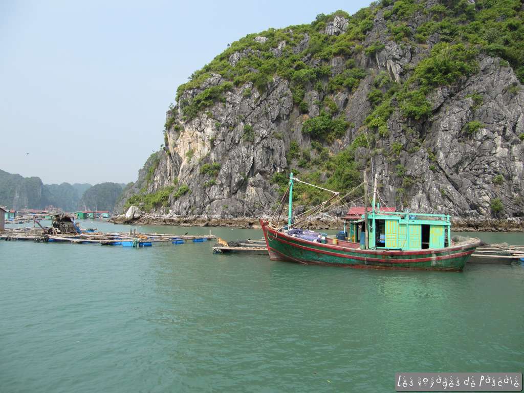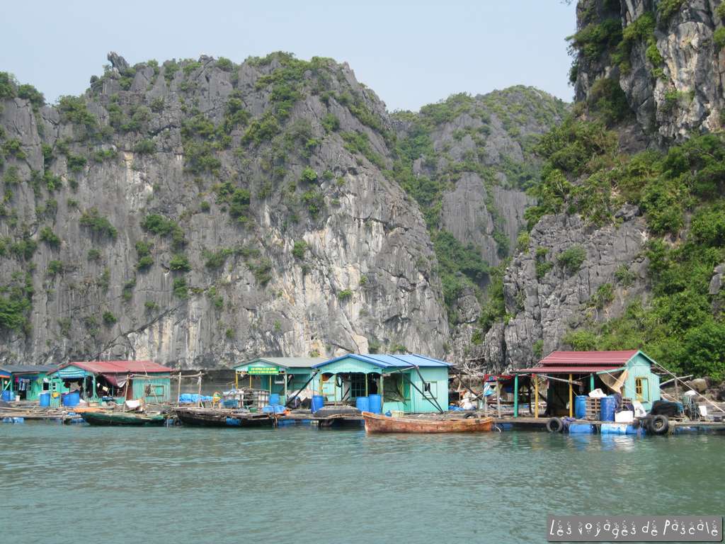 Je viens de regarder tes photos de Cat Ba, elles me laissent un goût très amer. Je m’explique : lorsque je vois la population des villages flottants, j’ai vraiment l’impression que tout ce tourisme moderne ne leur apporte rien ou presque. Ils semblent continuer leur petite vie de pauvres pêcheurs tout simplement à côté de ces grands hôtels fréquentés par ces Blancs qu’ils pensent tous très riches, mais il n’y a pas d’interaction entre les deux hormis le fait d’être photographiés comme des animaux de cirque. Cela me fait un peu penser aux femmes girafes du Triangle d’Or.