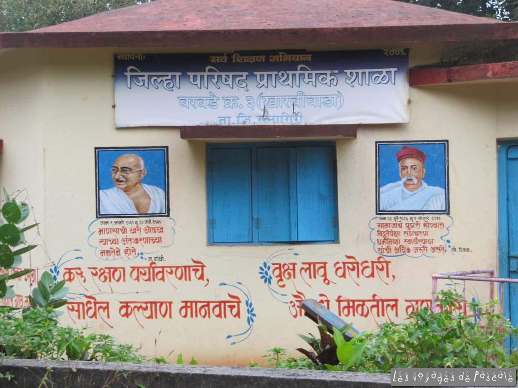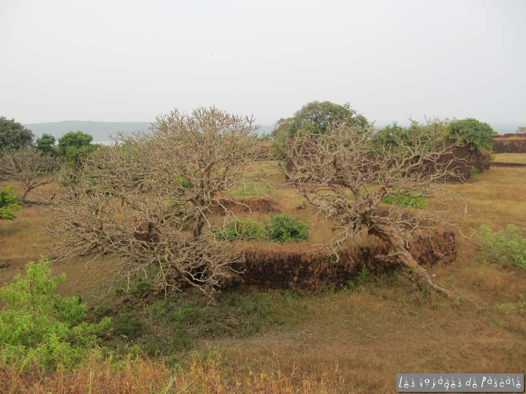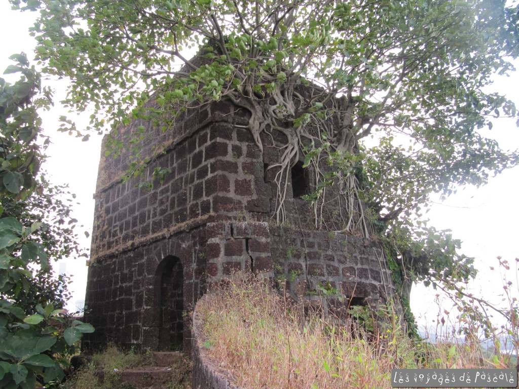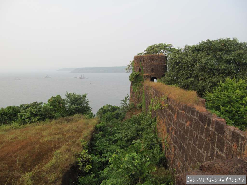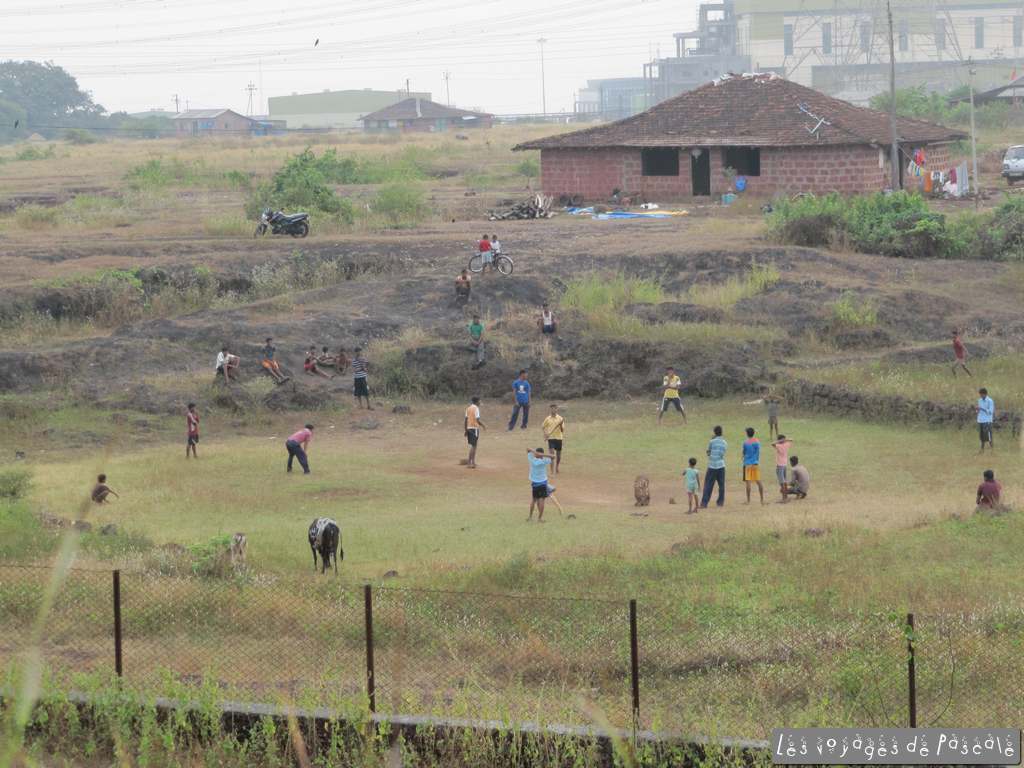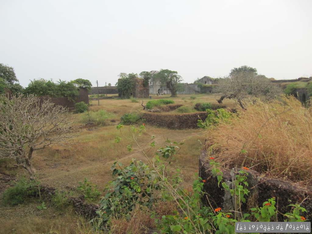Je rejoins Francis pour le déjeuner, nous avons décidé de suivre les panneaux « konkani beach restaurant, ½ km» pour voir s’il est possible de manger en bord de mer. Nous suivons un sentier en travaux, nous demandant vraiment si nous allons trouver quelquechose au bout. Et oui, malgré un réceptionniste en plein sommeil, il y a bien un resto très sympa dans ce resort qui a l’air désert. Je regrette de ne pas y avoir logé, les bungalows ont l’air sympa en plus. Curry de noix de cajou pour moi (bien léger !!!) et poulet kolhapuri pour Francis, mhhhhhh, trop bon. Retour au village par la plage, encore quelques photos de nous par ci par là, puis départ pour le fort de Jaigad. Non mentionné dans les guides, j’avais vu ca sur le net. C’est à une quinzaine de km, un joli petit fort quasi désert (à part des jeunes s’entrainant au cricket) surplombant un port de marchandises, enfin surtout de minerais servant à alimenter une aciérie. Nous avons fait le tour des remparts et sommes rentrés juste à temps pour me permettre de saisir le coucher de soleil. Rien d’extraordinaire du point de vue du soleil, mais une ambiance de folie, avec tous ces indiens qui se baignent et se photographient devant le soleil couchant. Pour clore la journée plage, encore une bon repas avec un poulet tandoori entier, un dahl (curry de lentilles) et quelques naans suivi de deux coupes de glaces industrielles (butter scotch pour moi, merci l’héritage anglais, et fraise, ultra chimique, pour Francis).