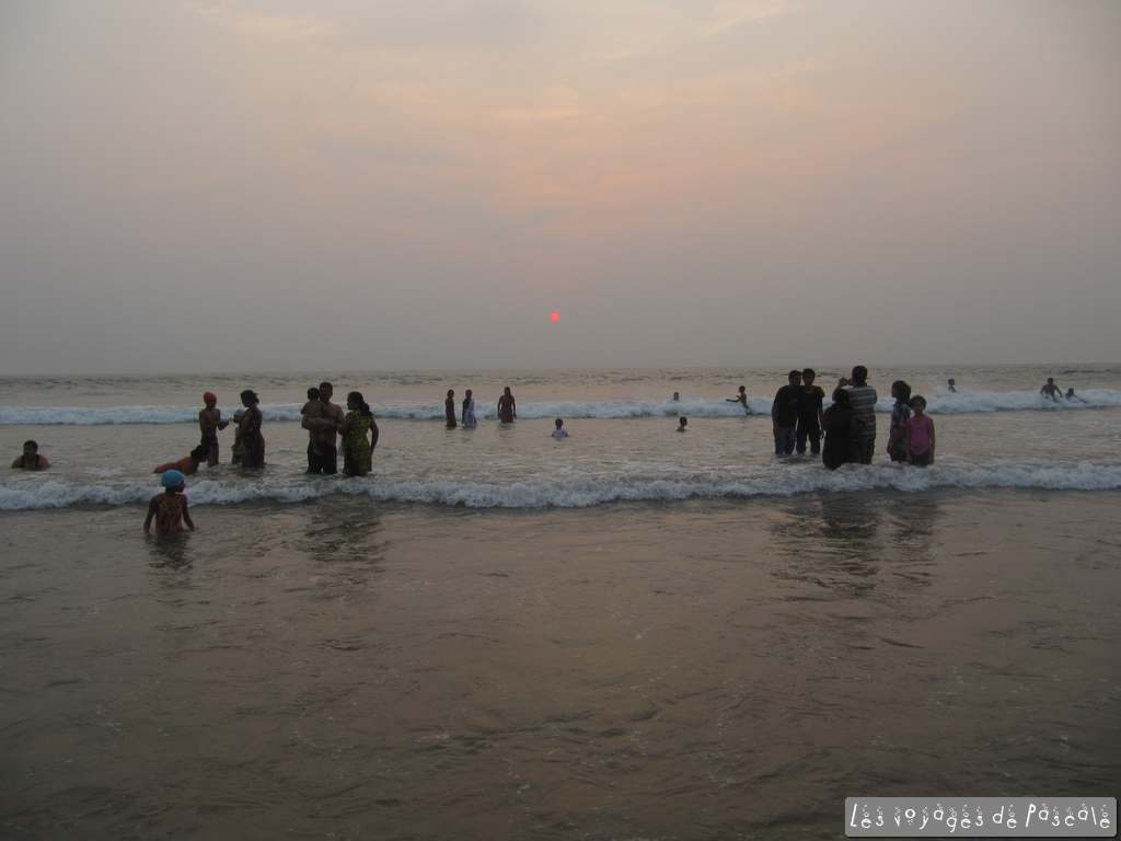 Dernière journée de plage = repos + gastronomie… nous commencons par un petit déjeuner léger, puis partons pour un nouveau bain de mer habillé, la grande spécialité du coin. Dès 10h, il y a foule dans l’eau, et quasi personne sur le sable, ceux qui ne se baignent pas s’assoient dans des chaises sous les toles des snacks des vendeurs de noix de coco fraiches.