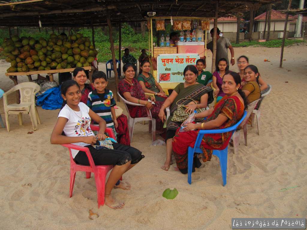 Je rejoins Francis pour le déjeuner, nous avons décidé de suivre les panneaux « konkani beach restaurant à ½ km» pour voir s’il est possible de manger en bord de mer. Nous suivons un sentier en travaux, nous demandant vraiment si nous allons trouver quelquechose au bout. Et oui malgré un réceptionniste en plein sommeil, il y a bien un resto très sympa dans ce resort qui a l’air désert. Je regrette de ne pas y avoir logé, les bungalows ont l’air sympa en plus. Curry de noix de cajou pour moi (bien léger !!!) et poulet kolhapuri pour Francis, mhhhhhh, trop bon. Retour au village par la plage, encore quelques photos de nous par ci par là, puis départ pour le fort de Jaigad. Non mentionné dans les guides, j’avais vu ca sur le net. C’est à une quinzaine de km, un joli petit fort quasi désert (à part des jeunes s’entrainant au cricket) surplombant un port de marchandises, enfin surtout de minerais servant à alimenter une aciérie. Nous avons fait le tour des remparts et sommes rentrés juste à temps pour me permettre de saisir le coucher de soleil. Rien d’extraordinaire du point de vue du soleil, mais une ambiance de folie, avec tous ces indiens qui se baignent et se photographient devant le soleil couchant. Pour clore la journée plage, encore une bon repas avec un poulet tandoori entier, un dahl (curry de lentilles) et quelques naans suivi de deux coupes de glaces industrielles (butter scotch pour moi, merci l’héritage anglais, et fraise, ultra chimique, pour Francis).