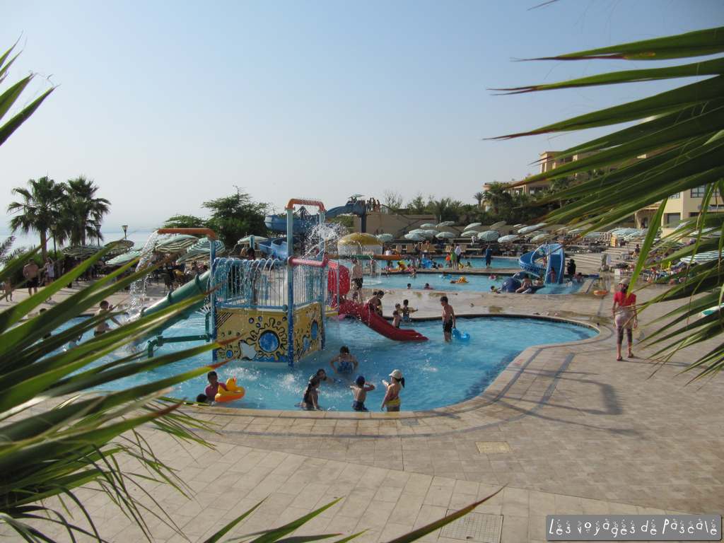 Les 4 piscines étaient dégoulinantes de monde, restait la plage de la mer morte, dans un environnement pas très attirant. L’expérience en elle-même est amusante, on se retrouve systématiquement sur le dos, se tartiner de boue est également régressif et en sortant de l’eau, on se sent huileux mais j’ai eu du mal à savoir si c’était à cause du sel ou à cause des crèmes solaires des touristes. Douche obligatoire et ensuite petite sieste sous une paillotte dans un calme relatif.