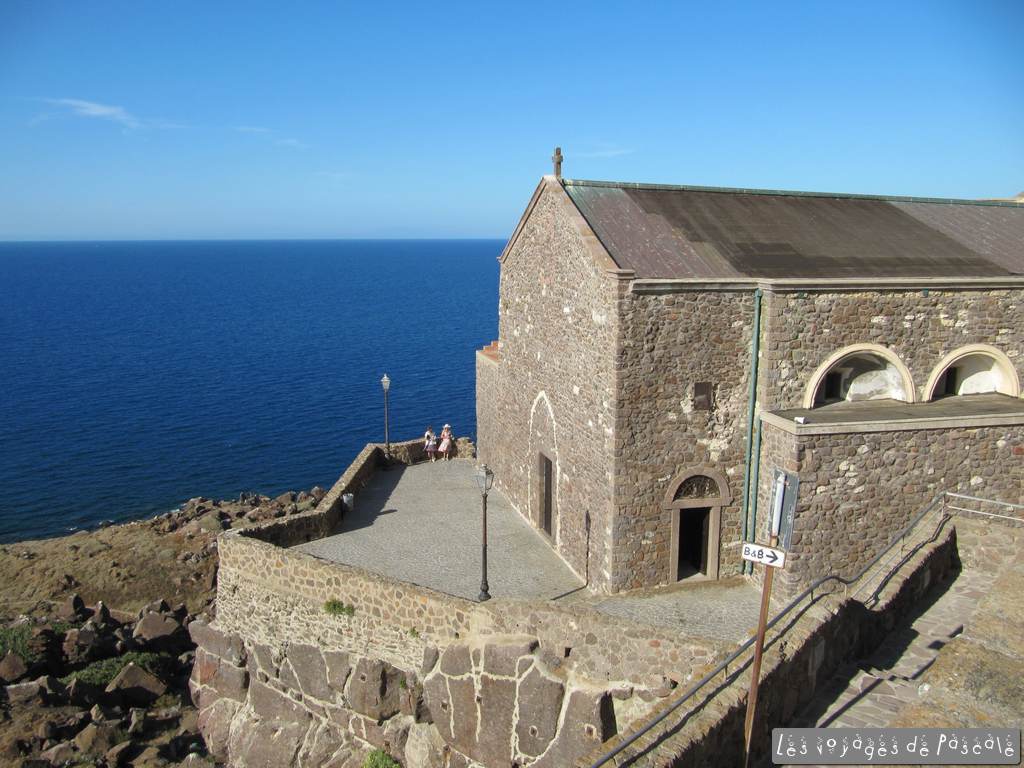 Nous repartons ensuite pour Castelsardo, un village médiéval perché sur un rocher et surplombant la mer. Une petite heure de balade entre églises et ruelles pavées avec des vues incroyables sur la mer. C’est tranquille, peu de touristes, beaucoup de tables de resto vides, la crise passe évidemment aussi par l’Italie.