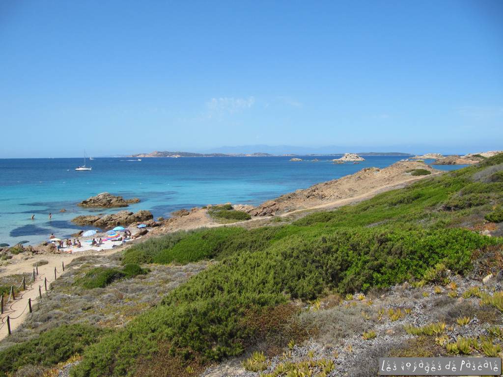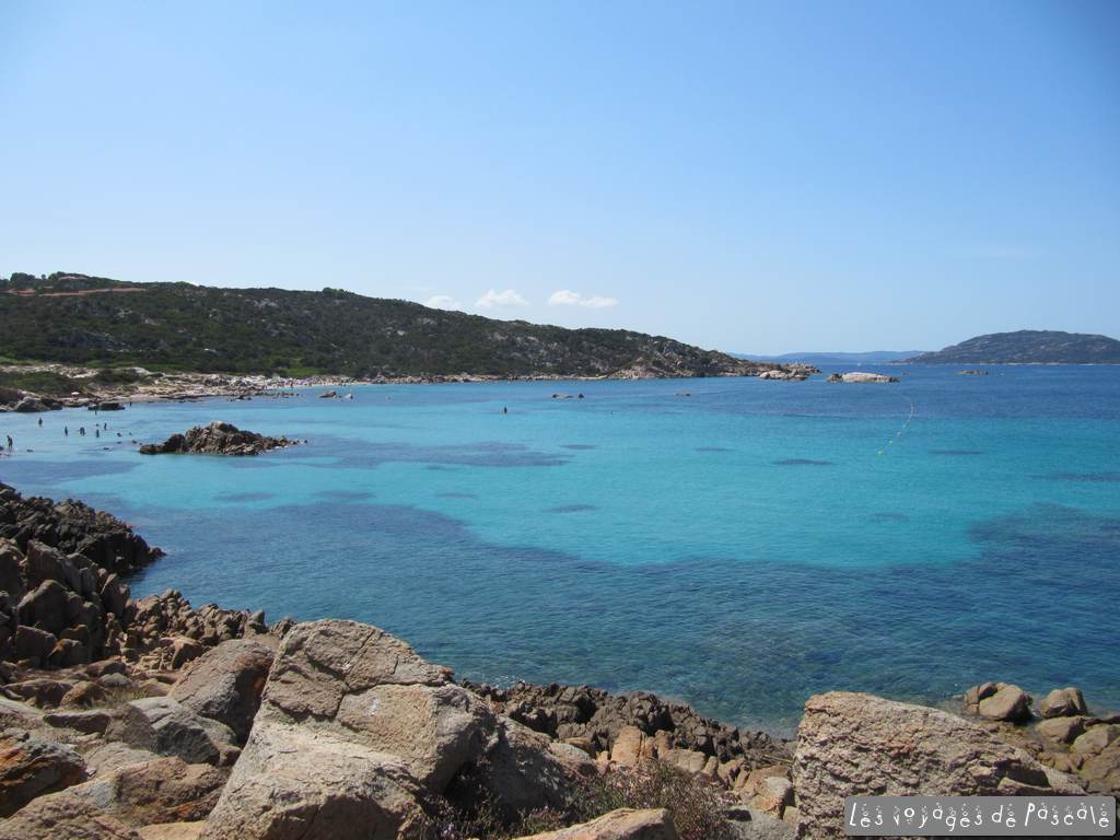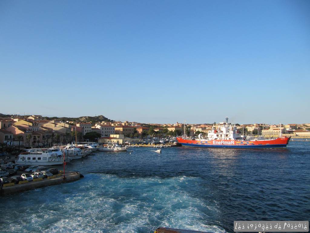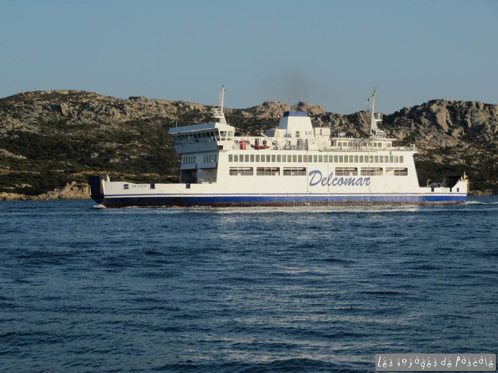 Normalement, le clou du séjour aujourd’hui, la virée aux iles Maddalena, à l’extreme nord Est de la Sardaigne, tout près de la Corse. Ca valait donc le coup d’une levée un peu spéciale avec un départ à 8h30 pour parcourir les 48 km jusqu’à Palau, port d’embarquement pour les iles. Toujours des virages avant l’arrivée à Palau, suivez les flèches, c’est tout droit, on embarque la voiture, même pas besoin de ticket, on vous garde une pièce d’identité jusqu’à ce que vous alliez régulariser à bord du bateau, en clair, c’est super bien organisé et facile. Résultat, à 10h, débarquement du car ferry pour découvrir l’ile, en fait les iles, car l’ile principale, La Maddalena est reliée à l’ile Caprera par une petite route. L’ile Caprera sera donc notre première destination et c’est un beau début, elle est verte, pas construite (Proprieté privée de Garibaldi pendant un certain temps, ceci expliquant sans doute cela), et avec des criques splendides d’un bleu turquoise. Premier arrêt plage avant d’attaquer la seconde ile, qui au final, bien que très belle, nous a un peu moins plu car plus « civilisée ».