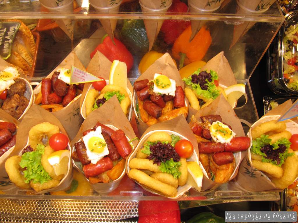 Pause sieste de près de deux heures trente avant de repartir dîner sur la Barceloneta, en longeant tout le front de mer. Petit bar resto en terrasse avec de la sangria qu’on ne sert pas en dessous du demi-litre et quelques sandwichs et tapas bien arrangés.