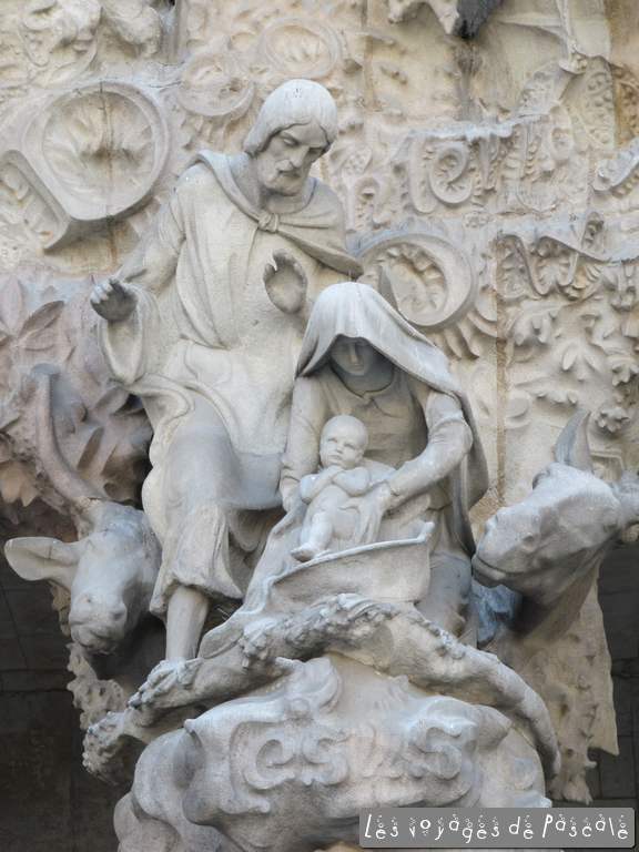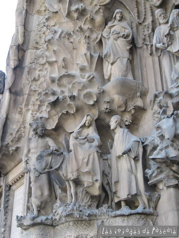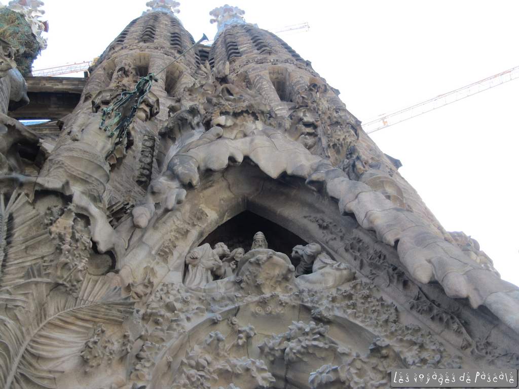 Enfin, c’est le moment de la Sagrada familia, le e-ticket nous évite toute queue, on entre immédiatement, génial. L’extérieur est assez décevant car beaucoup de parties sont soit recouvertes de filets, soit en travaux. La partie la plus travaillée, la façade de la Nativité était en plus totalement en contre jour, donc pas forcément très mise en valeur par la lumière, mais pour autant, quel ciselage, quelle finesse dans les détails, vraiment très beau. Nous sommes ensuite entrée et contrairement à ce que j’ai lu ici ou là, se contenter de l’extérieur serait une monumentale (:-)) erreur. La hauteur des piliers, le jeu de lumière des vitraux, tout est impressionnant de gigantisme et surtout si différent d’une église traditionnelle dont le principe a été totalement revisité, tout est là mais modernisé et immense. Vraiment à ne pas manquer.