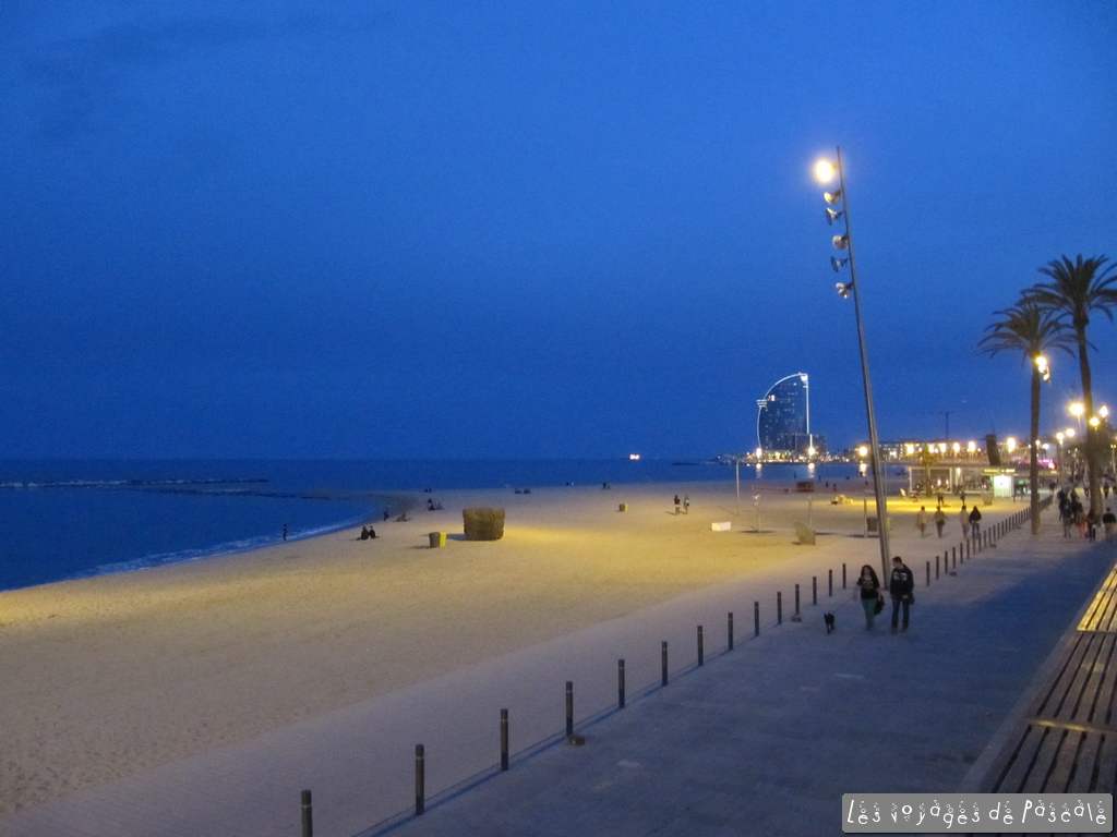 Pause sieste de près de deux heures trente avant de repartir dîner sur la Barceloneta, en longeant tout le front de mer. Petit bar resto en terrasse avec de la sangria qu’on ne sert pas en dessous du demi-litre et quelques sandwichs et tapas bien arrangés.