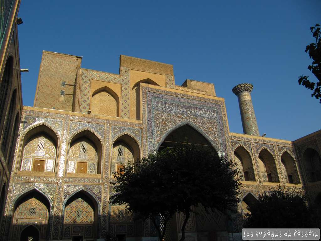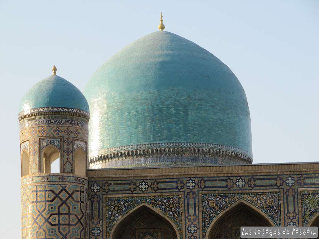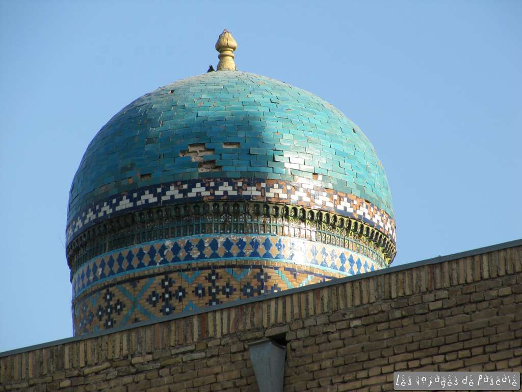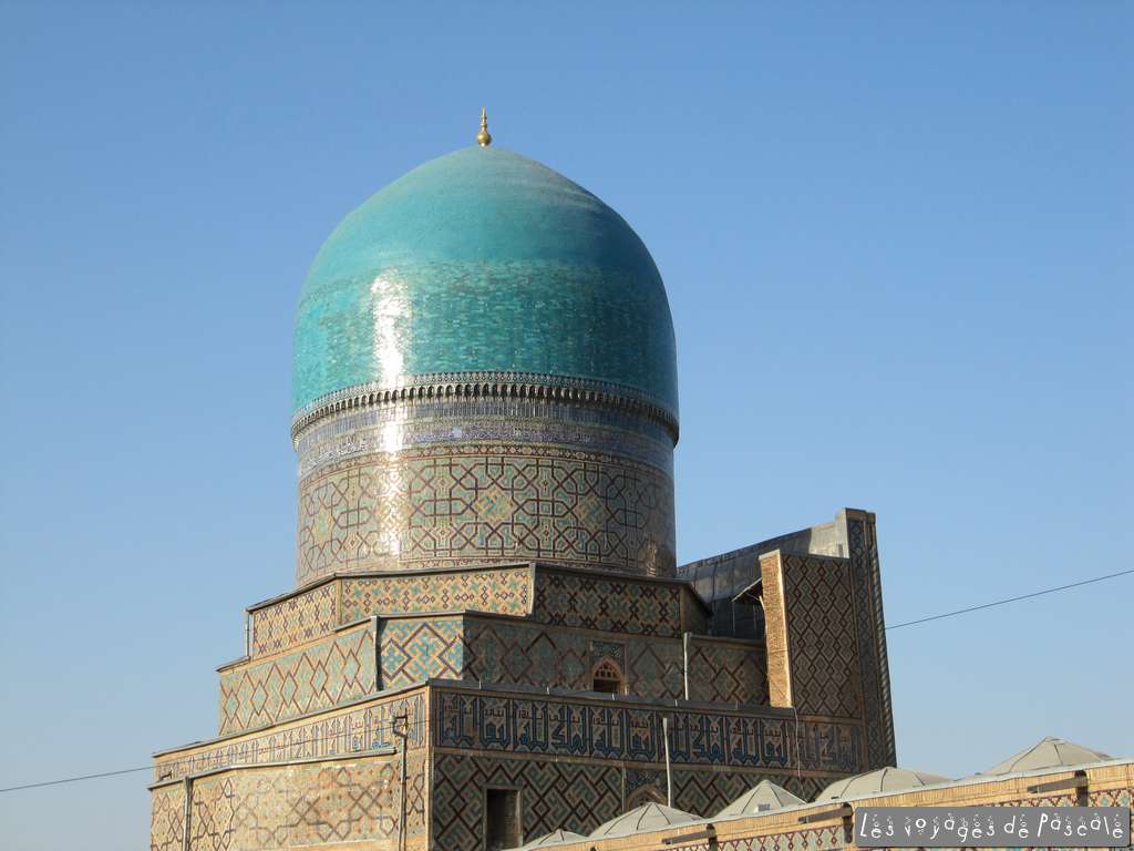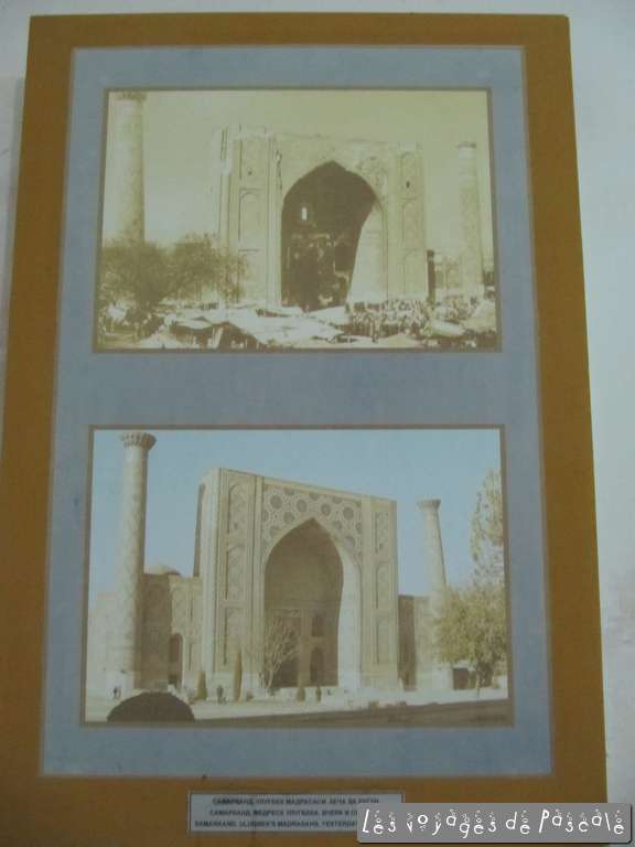 Pour finir ma journée, balade au coucher du soleil à la mosquée Bibi Khalum, retour au registan, arrêt dans le premier supermarché que je vois depuis mon arrivée pour voir un peu les produits. Et oui il y a du beurre dans ce pays bien que pour l’instant, je n’en ai pas vu une once au petit déjeuner… la technique de rendu de monnaie est la même qu’au marché, quand, c’est inférieur à 200 soums, on vous donne une boite d’allumettes, je suis à 3 depuis le début du séjour !!!