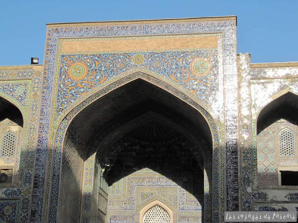 Petit déjeuner à 7h30, nous partons ensemble avec ma voisine anglaise dont je n’ai même pas pensé à demander le prénom. On commence par une « marchroutka » pour le bazar Karvon mais en fait, on nous arrête avant à des bus pour Samarcande. Et là, bonjour la foire d’empoigne. Dès que nous sommes sorties du minibus, ils se sont jetés sur nous, l’un m’a pris mon sac à dos pour m’entraîner vers un bus rouge, l’autre me tirait pas le bras pour m’emmener au bus jaune, une horreur… J’ai gueulé pour qu’ils arrêtent de me toucher et j’ai demandé combien. 20000 pour le rouge, 15000 pour le jaune. En parrallèle, ma collègue discutait avec un autre rabatteur du bus jaune qui semblait lui dire qu’il était plus rapide, moi ce qui m’a décidée, c’est du pur chauvinisme, le jaune était un bus français recyclé ici…