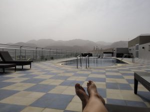 Piscine dans la brume