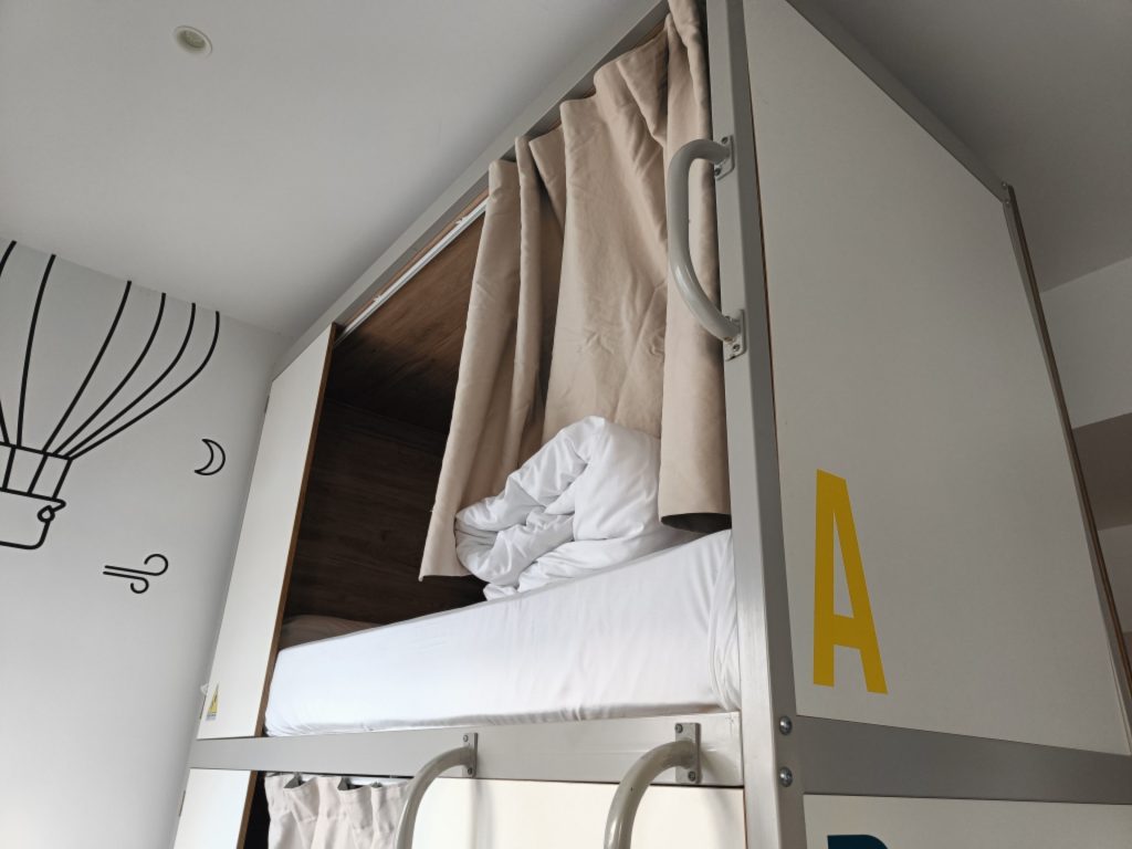Je dois déjà récupérer la clef de mon dortoir, c’est tout près de la gare routière mais mauvaise nouvelle, je suis en couchette haute et pas de barre de protection pour ne pas se casser le figure pendant la nuit. Je pense que le réveil demain matin et la descente à 4h du matin sera délicate.