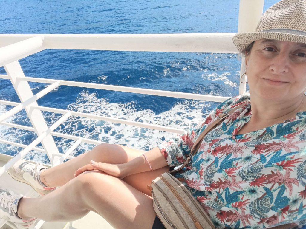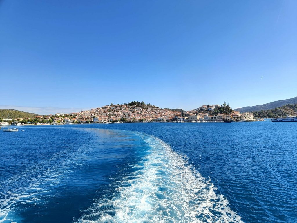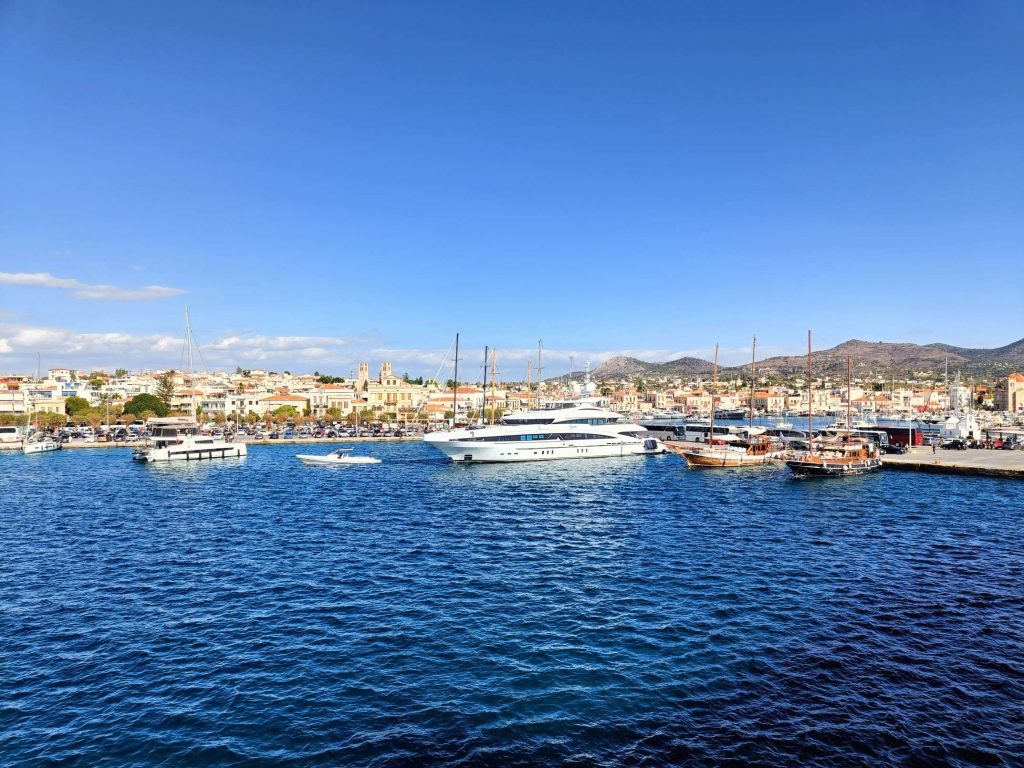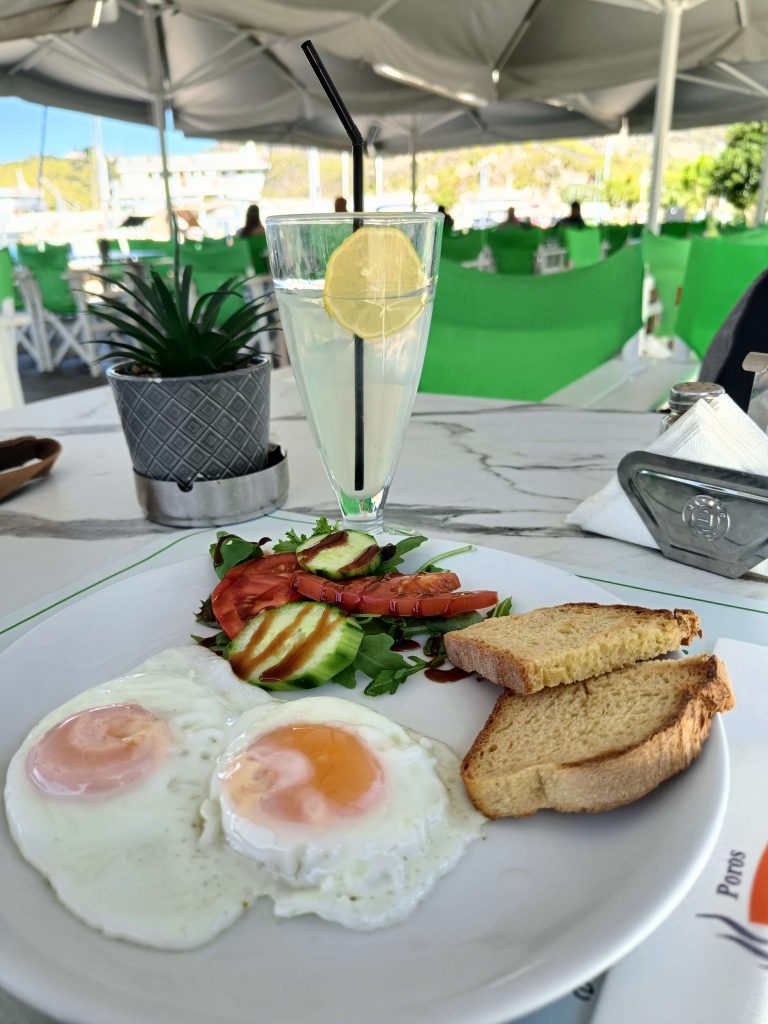 Vers 12h30, j’ai pris un jus de citron et deux oeufs au plat qui me faisaient envie, puis embarquement sur le ferry, avec pleins de ponts ouverts, avec l’odeur du gasoil, le vrai ferry typique de Grèce qui embarque les voitures. On a fait 2 arrêts, le premier à Methana, une presqu’ile volcanique où j’aurais bien aimé aller mais j’ai pas trouvé de moyen de transport à cette saison pour y passer la journée. Le second, à Egine, alors là, on a chargé un flot de vacanciers impressionnants. Au débarquement au Pirée, c’était un beau bordel en tout cas !