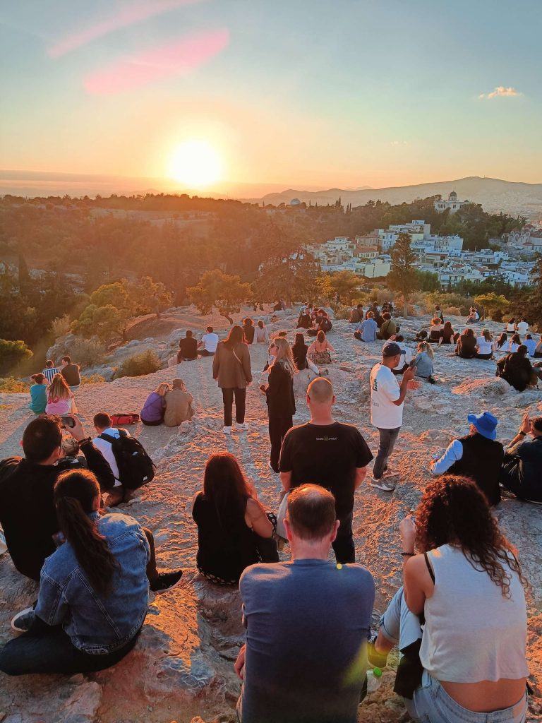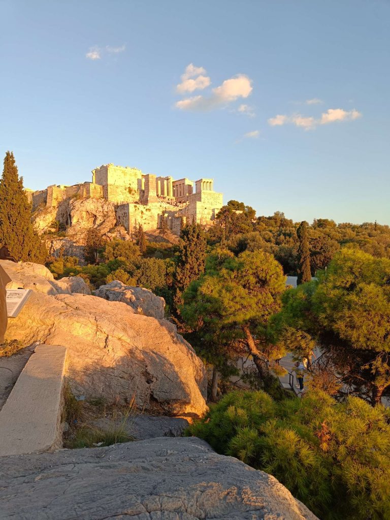 Ensuite, j’ai pris le métro, j’ai découvert que mon ticket de l’aéroport se rechargeait avec la carte bancaire, pratique.L’auberge de jeunesse est comme attendue, basique et super bien placée mais avec un accueil chaleureux, la nana m’a appris qu’un des personnages de Ratatouille s’appelait Pascal, heureusement que je suis venue en Grèce pour apprendre ça. Je suis repartie voir le coucher du soleil, il fallait grimper près de l’entrée de l’Acropole, mais quel monde !!! J’ai du mal avec la foule depuis longtemps mais j’ai l’impression que c’est pire depuis le cancer. J’ai trouvé ça oppressant tout ce monde étalé partout, heureusement que c’était plus calme à Poros ! Je me dis que toutes les grosses villes sont devenues infréquentables avec les flots de touristes déversés par les low cost pour les weekends de 3 ou 4 jours, même en octobre.. c’était pareil à Séville, je vois les manifestations à Barcelone, y a plus de saison pour le tourisme urbain, c’est non-stop. Je comprends que les locaux regrettent ces repits des basses saisons, même si ceux qui vivent du tourisme s’en frottent les mains !