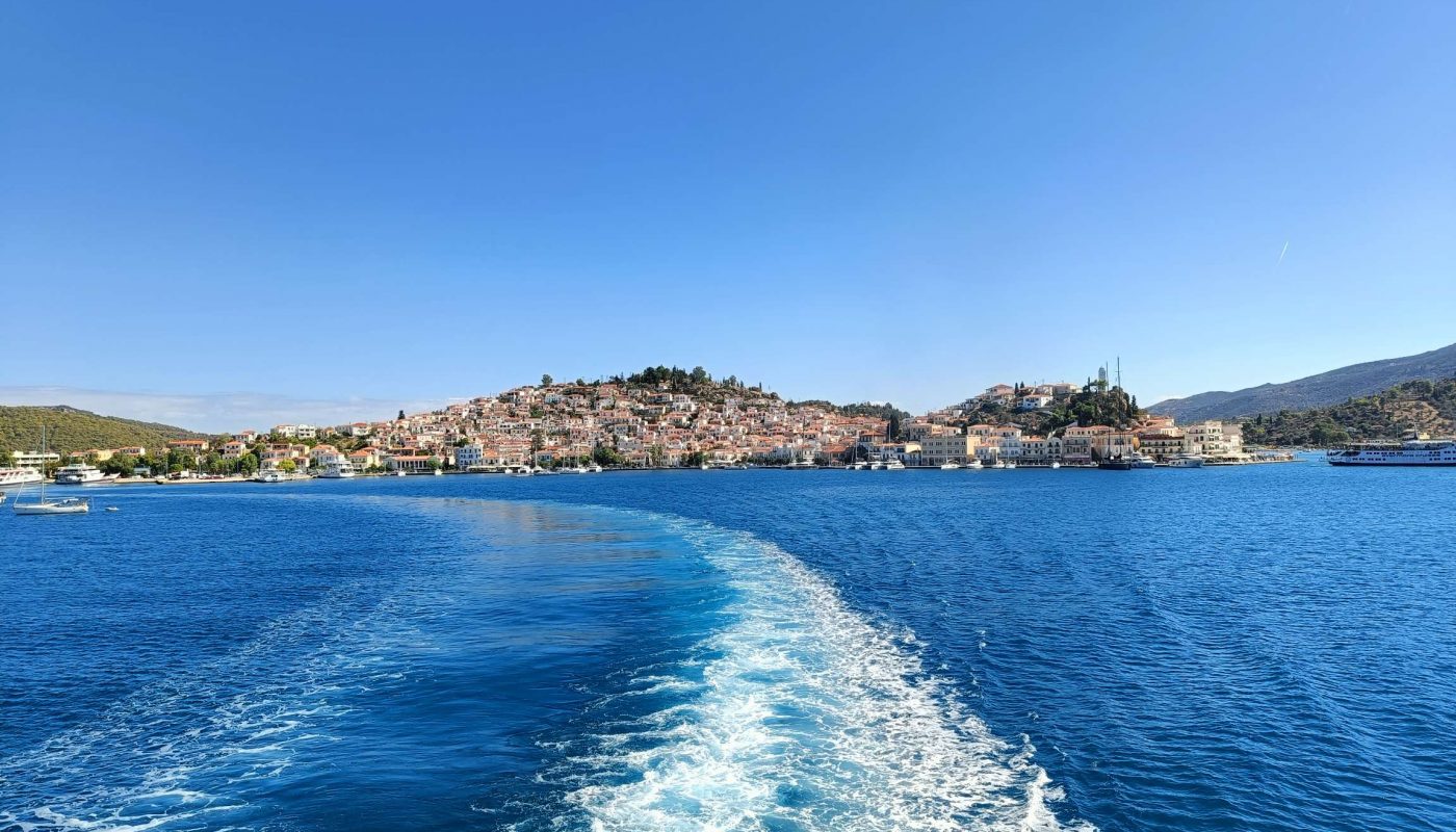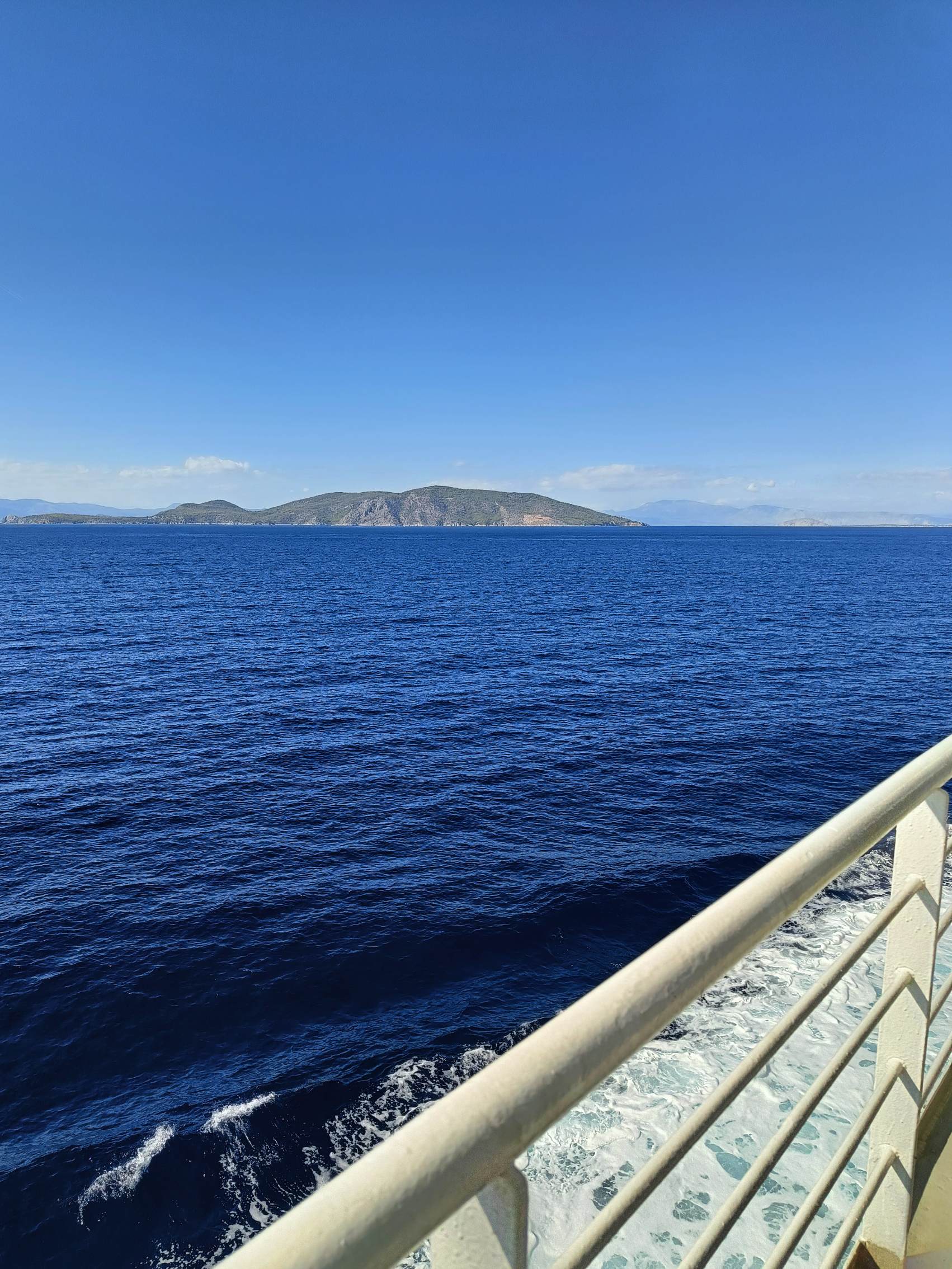 Vers 12h30, j’ai pris un jus de citron et deux oeufs au plat qui me faisaient envie, puis embarquement sur le ferry, avec pleins de ponts ouverts, avec l’odeur du gasoil, le vrai ferry typique de Grèce qui embarque les voitures. On a fait 2 arrêts, le premier à Methana, une presqu’ile volcanique où j’aurais bien aimé aller mais j’ai pas trouvé de moyen de transport à cette saison pour y passer la journée. Le second, à Egine, alors là, on a chargé un flot de vacanciers impressionnants. Au débarquement au Pirée, c’était un beau bordel en tout cas !