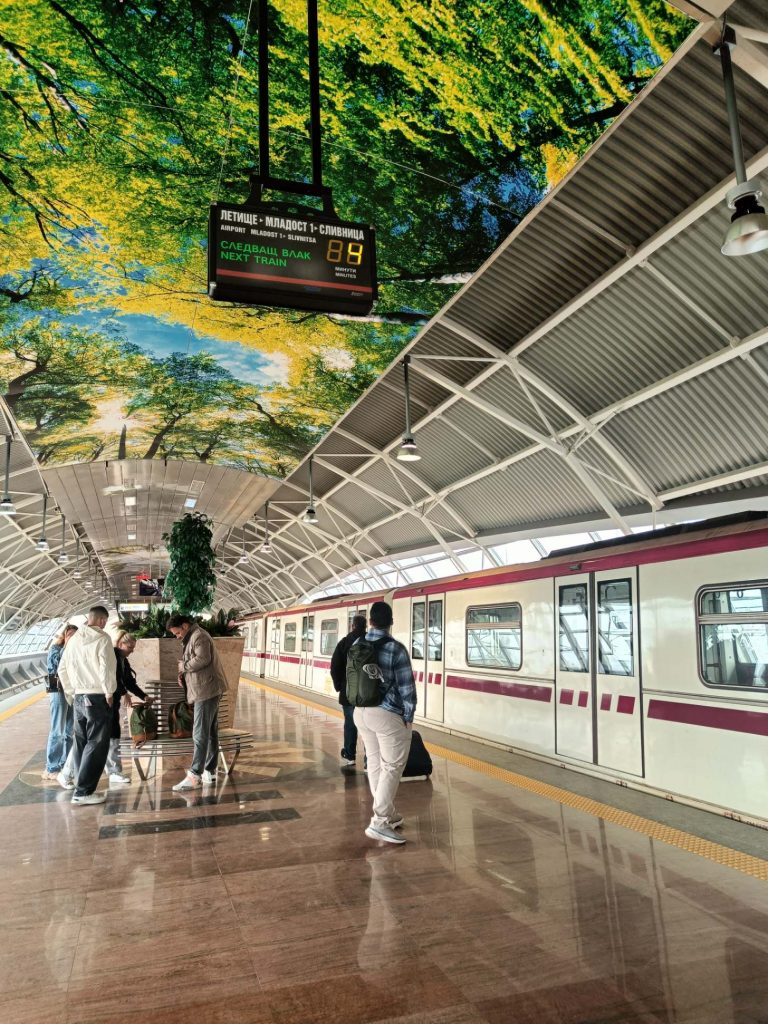 Vol d’une heure sans encombres, et même avec un petit repas (sandwich et barre de céréales), je devais prendre le bus mais j’ai révisé ma position au vu des avis sur les compagnies bulgares et l’état des bus, je ne me voyais pas faire 12h de voyage dans un bus pourri sans pause pipi. Et franchement aucun regret après ce vol. A l’arrivée à Sofia, j’ai perdu au moins 5 degrés par rapport à Athènes, le ciel est partiellement couvert mais ça fait du bien d’être dans un nouvel endroit. L’aéroport est flambant neuf, et le métro pour aller au centre ville part toutes les 10mn pour 0.80 € ! Un prix défiant toute concurrence pour rallier le centre ville à partir d’un aeroport.