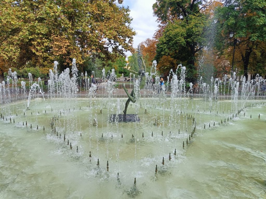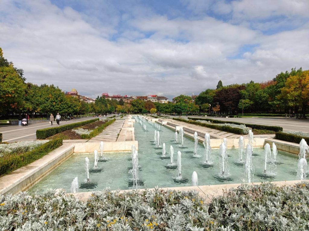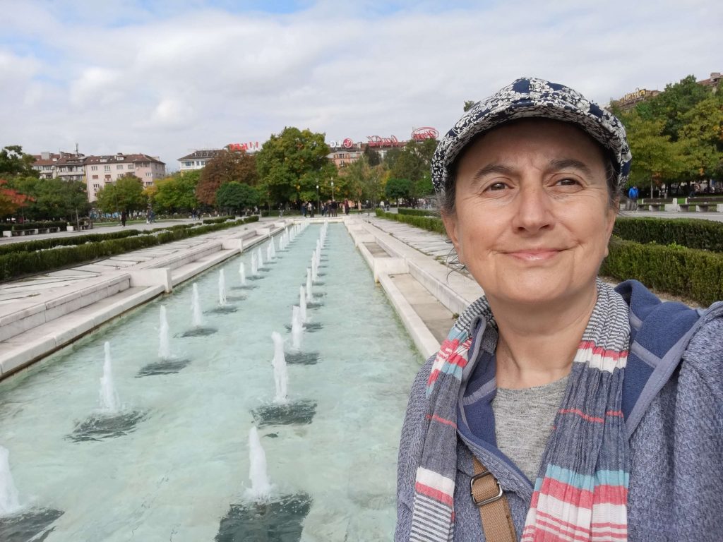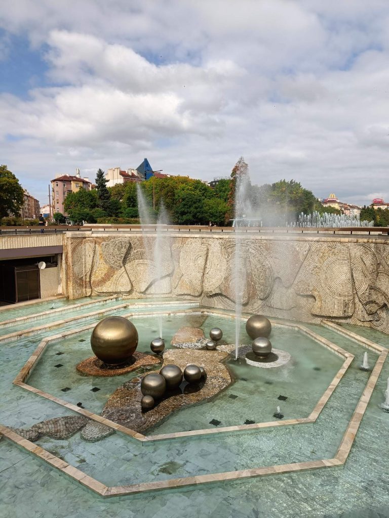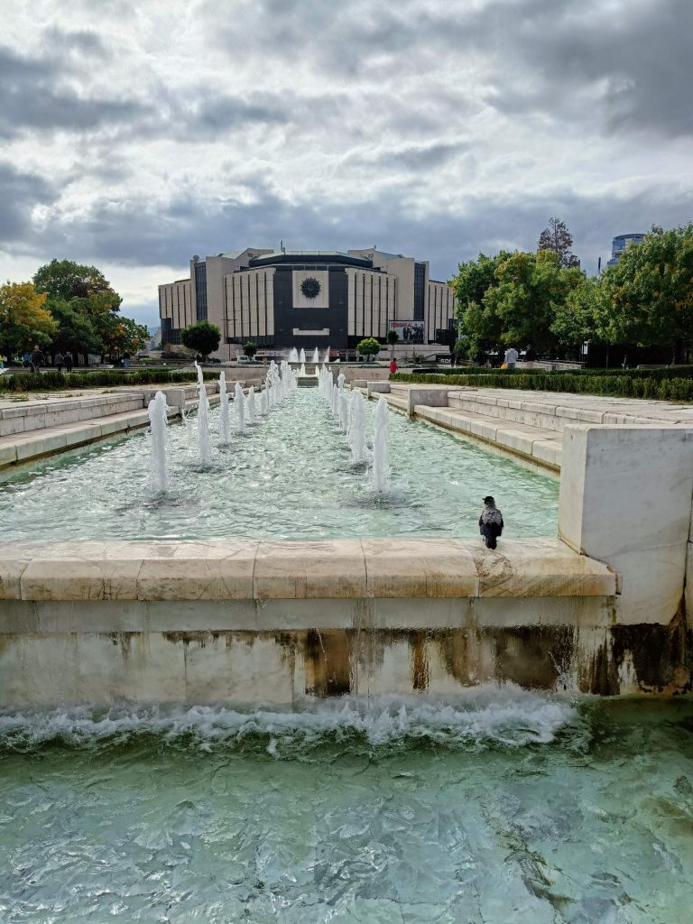 J’ai poussé jusqu’au palais de la culture (très moche) mais par contre les fontaines devant sont très belles. C’était chouette, le soleil commençait à pointer, et au loin je voyais une montagne avec de la neige.. hier matin j’étais en Grèce à me baigner, maintenant le pourrais presque aller skier !