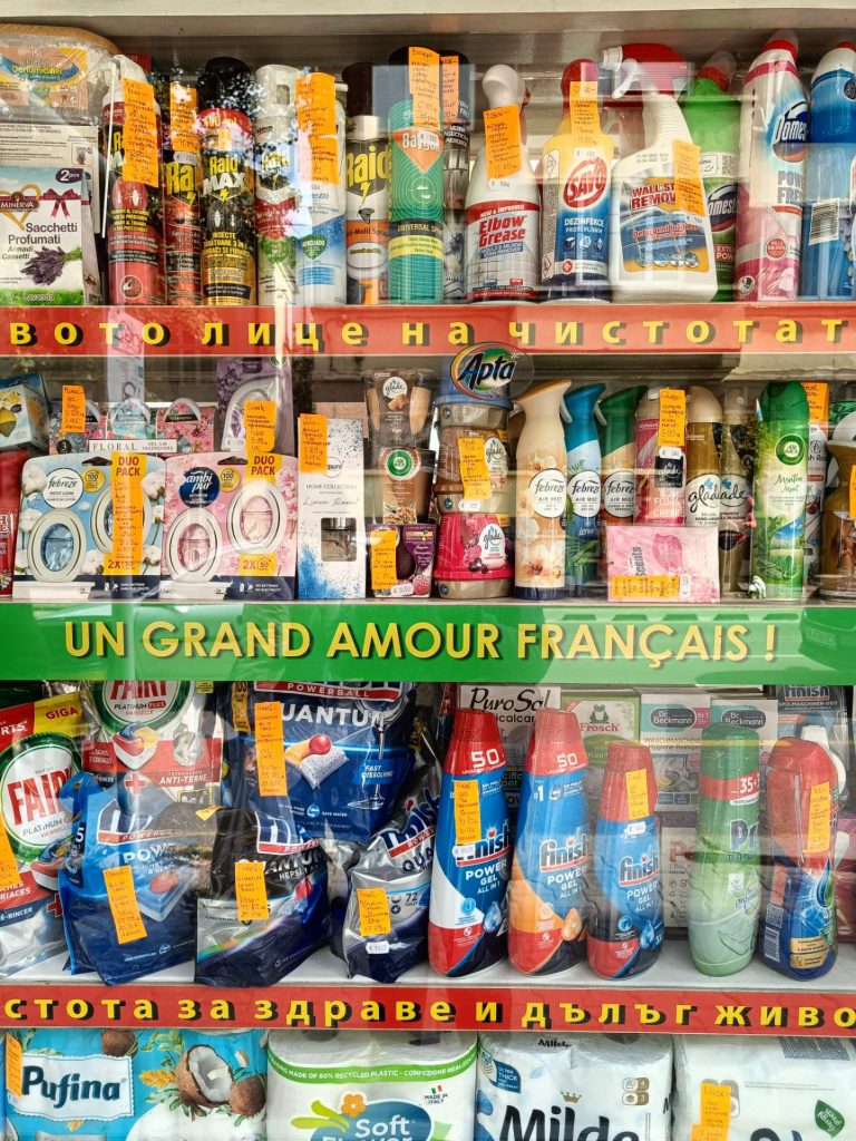 Niveau magasin, je suis fan de leurs boutiques vitrines, je ne sais pas comment appeler ça mais tous les produits sont en vitrine avec les prix en lev et euros mais on ne peut pas les prendre, et y a un petit guichet où la vendeuse encaisse et tend le produit en échange. C’est pas du self service, et c’est tellement inhabituel que ça parait exotique !