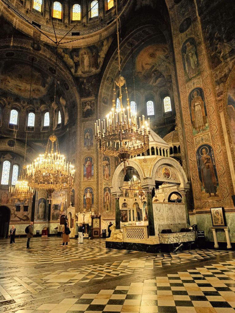 A l’arrivée, c’est un peu bizarre car on a plein de voitures et pas de feux, en fait, il faut se servir du métro pour passer dessous les avenues mais entre le cyrillique et ma méconnaissance de la ville, j’ai eu un peu de mal à me repérer. Finalement, je suis arrivée à la guesthouse vers 11h30. Je pensais que ma chambre ne serait pas prête et que je laisserai mon sac mais on m’a donné les clefs. C’est pas le grand luxe mais y a tout ce qu’il faut, même une cuisine partagée bien équipée. Je me pose un peu et je pars à la découverte de Sofia. Tous les guides disent que les principaux monuments sont proches les uns des autres et sans besoin de prendre de transport. J’ai commencé par remonter la rue Vitosha piétonne, que des restos et magasins, je voulais aussi trouver un distributeur pour avoir quelques lev sous la main en cas de refus de carte bancaire. L’euro arrive au 1er janvier 2026 mais en attendant, le lev a toujours court.