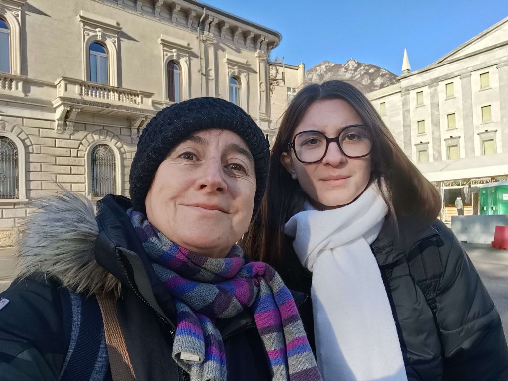 Premier débarquement à Lecco, village ‘normal’, avec une patinoire et un joli front de mer sur le lac. En fait ici c’est le lac de Lecco mais qui rejoint le lac de Côme. Il y a du vent qui permet même le kitesurf, c’était franchement sympa et sans chichi car peu de touristes. On a déjeuné de piadines dans un bar sympa, vraiment les serveurs sont très avenants et on est vite servi.