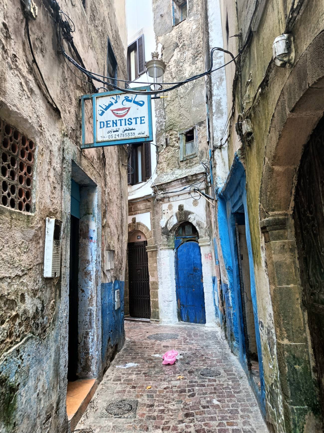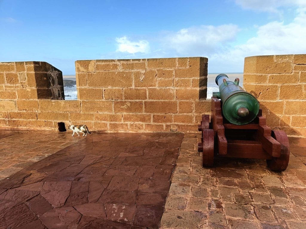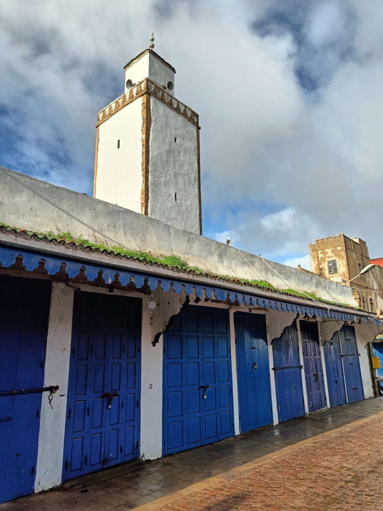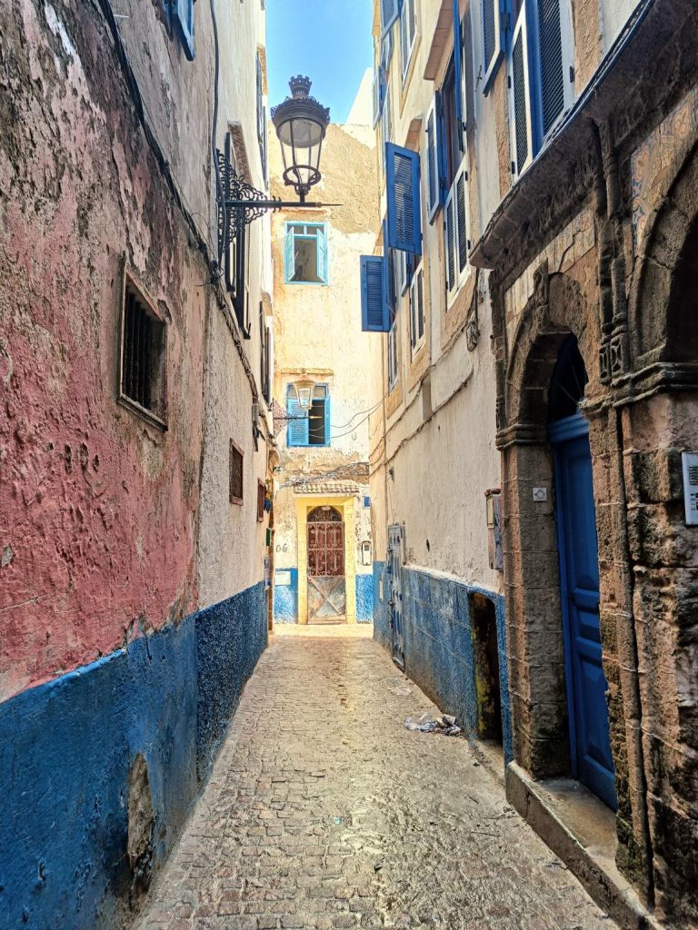 Après ça, première virée du jour dans la médina pour voir l’état de la mer, des remparts et traversée du quartier du Mellah (ancien quartier juif) carrément pas en aussi bon état que la partie plus touristique. Par contre, ce qui est étonnant, c’est que au milieu de vieux immeubles aux portes pas vraiment clinquantes, on voit apparaitre au détour d’une rue un café branché tout récent rempli comme un oeuf de jeunes gens sortis du même moule devant un petit déjeuner tout sauf marocain. Alors que le Maroc regorge de pains délicieux, venir au Maroc manger des pancakes et des toasts à l’avocat, ça me dépasse.