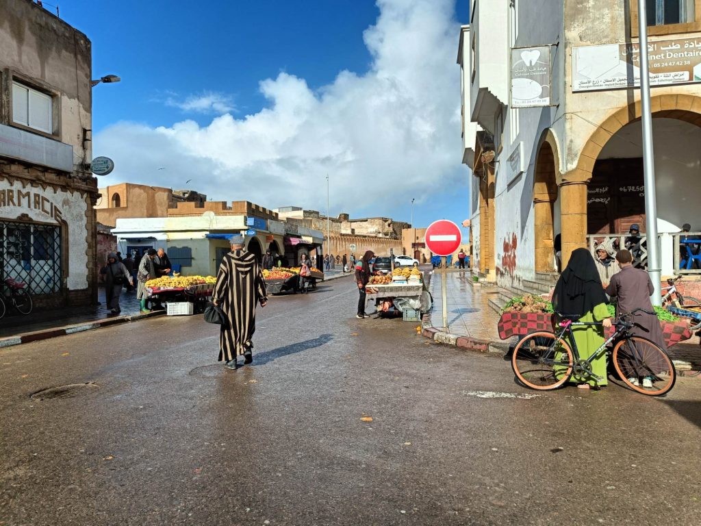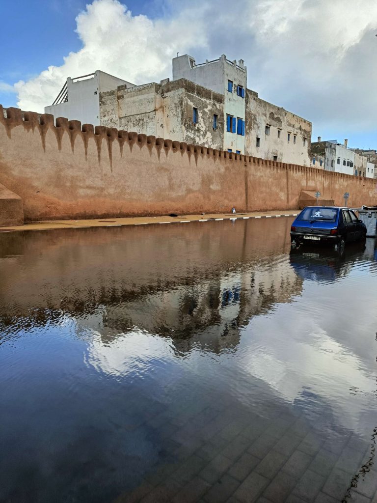 Ca souffle encore beaucoup, j’ai vu sur internet que Agadir-Essaouira avaient été classés en rouge niveau en météo ce weekend, à cause de la tempête ‘Francis’. J’ai voulu aller dans un hammam de la ville nouvelle mais j’ai du rebrousser chemin à cause des inondations. A certains endroits, les marocains se mettaient pieds nus pour traverser la route inondée et l’eau leur arrivait au mollet.
