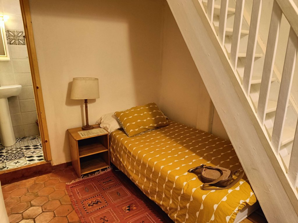 J’ai ensuite retrouvé Benoit pour le dîner (malgré le fait que j’étais huileuse comme une frite après le massage, pas eu le temps de me doucher). On a fait le plein de légumes avec du zaalouk (salade d’aubergines chaudes) et du taktouka (salade de poivrons tomates chaudes). Avec ça, j’ai complété avec un tagine au poulet, plein de légumes également. On devait manger du poisson mais les types avaient fermé boutique faute de clients. Par contre, gros coup de barre après dîner, deux journées avec 15 km à pieds d’affilée, ça fait un peu beaucoup !