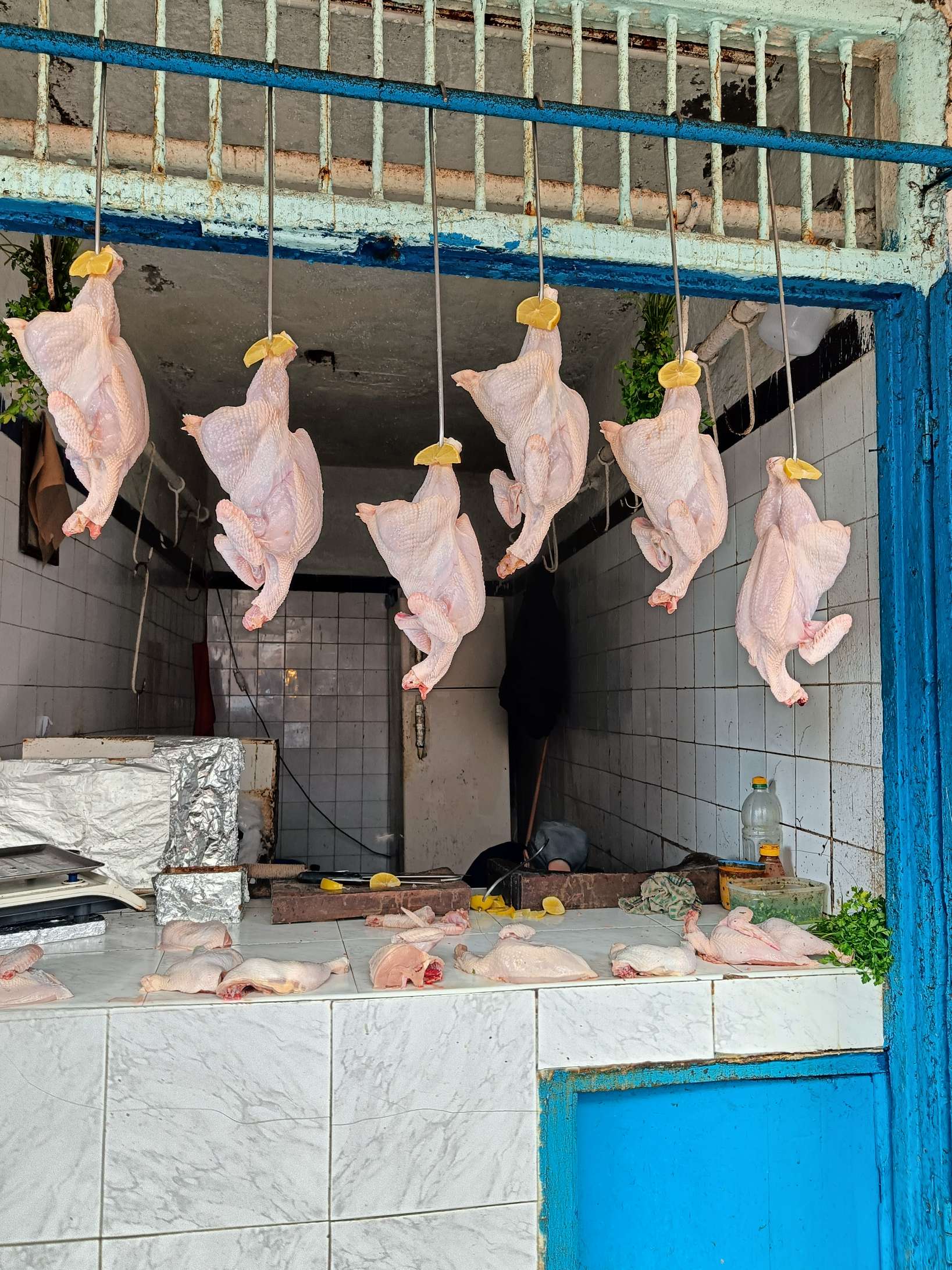 Contrairement à hier, très peu de monde, j’ai eu les canons quasiment pour moi seule. J’en ai profité pour prendre rendez-vous pour un massage, je voulais ce midi mais je n’ai pu avoir que à 18h. Après ça, balade en ville avec Benoît le Toulousain au marché aux poissons pas très fourni aujourd’hui, encore la faute de la météo. J’ai ensuite effectué mon transfert de chambre, et je suis de se retour dans une chambre plus exiguë et spartiate pour ma dernière nuit à Essaouira.