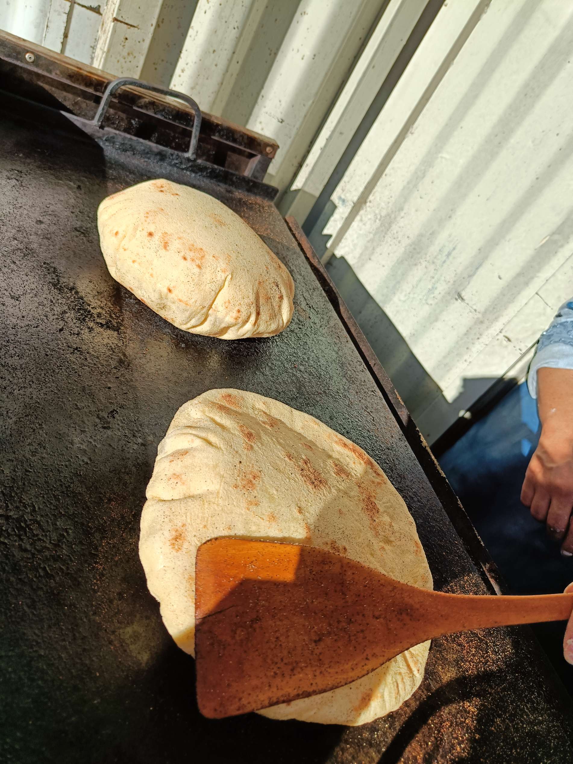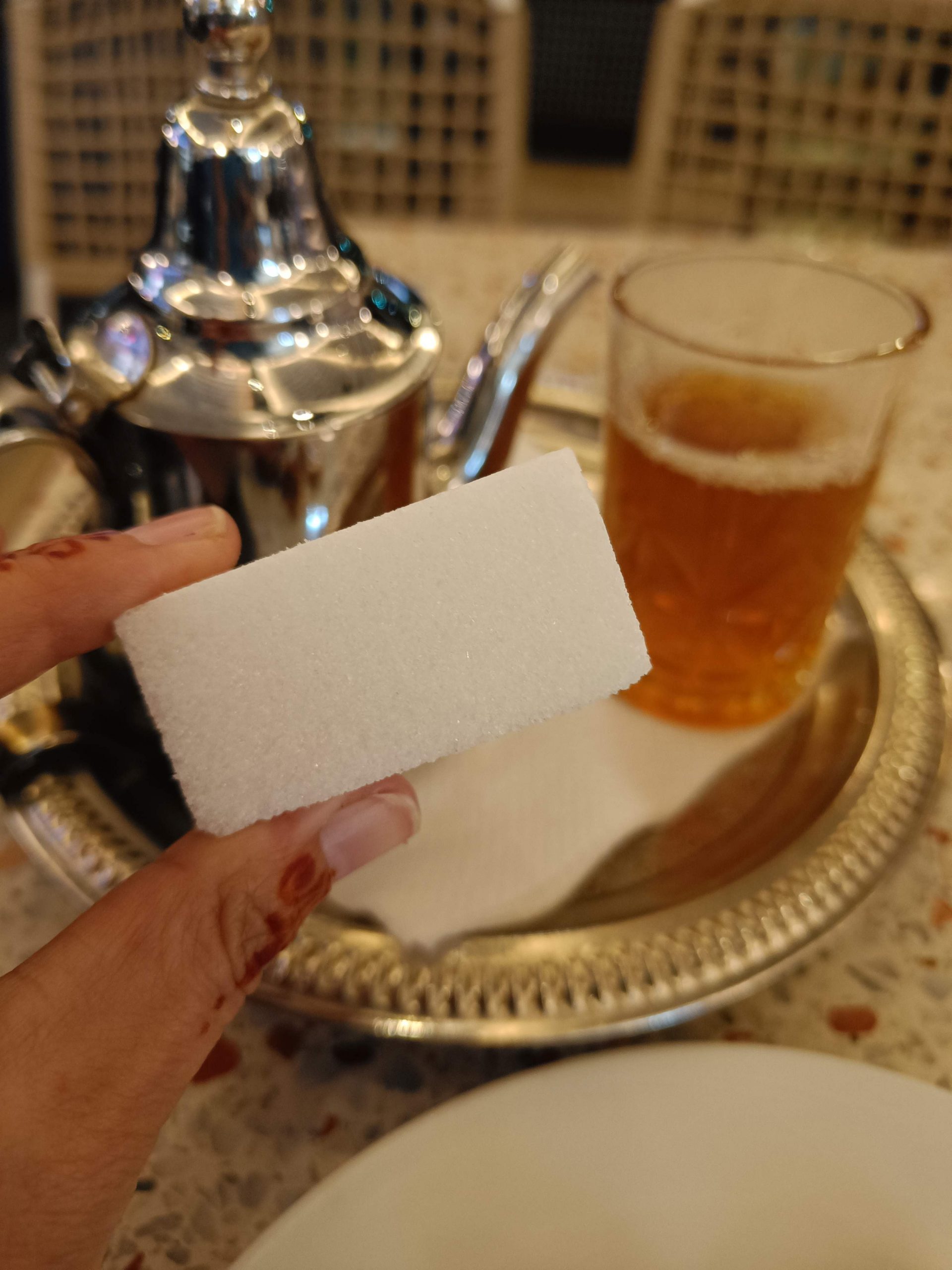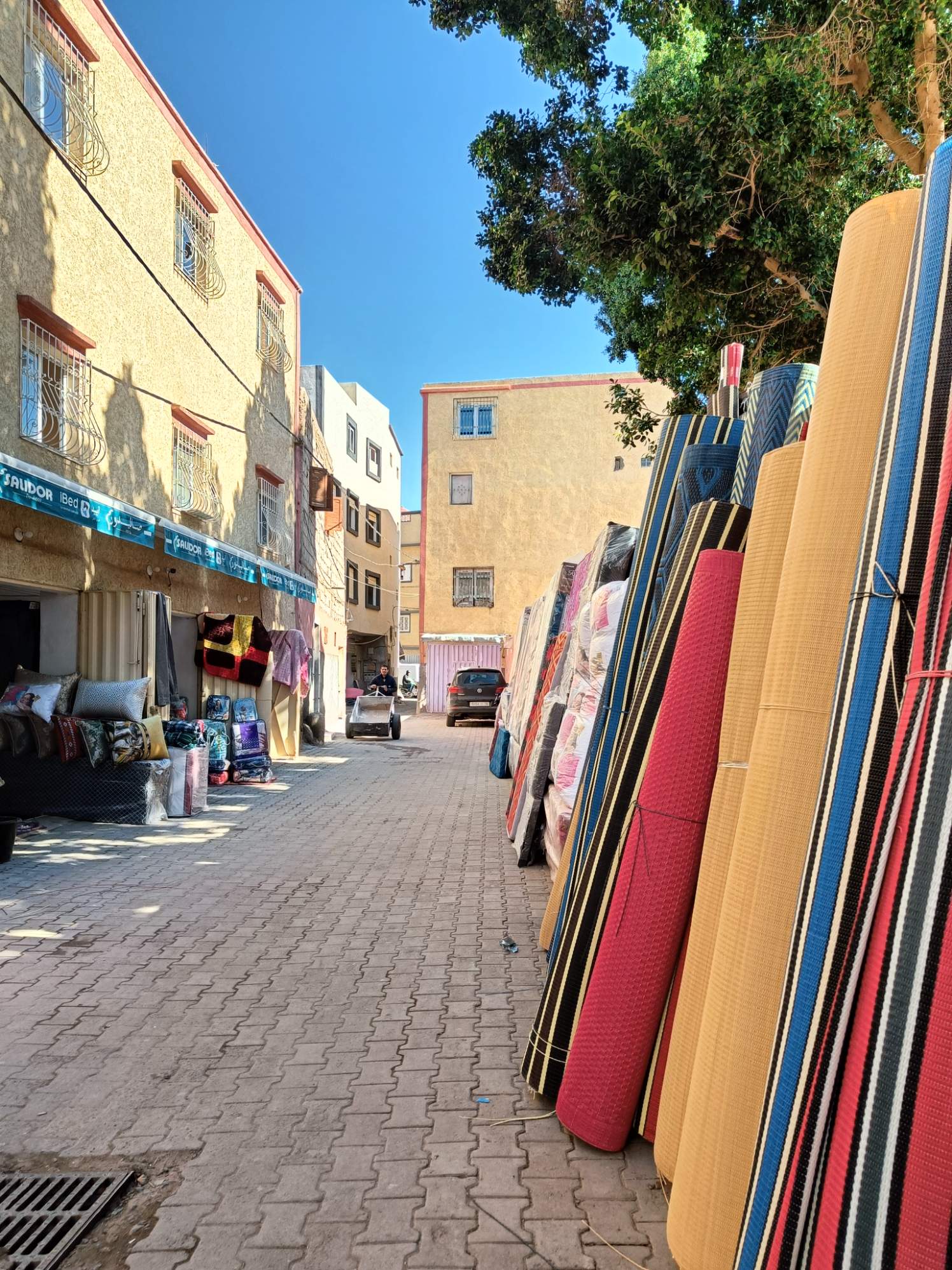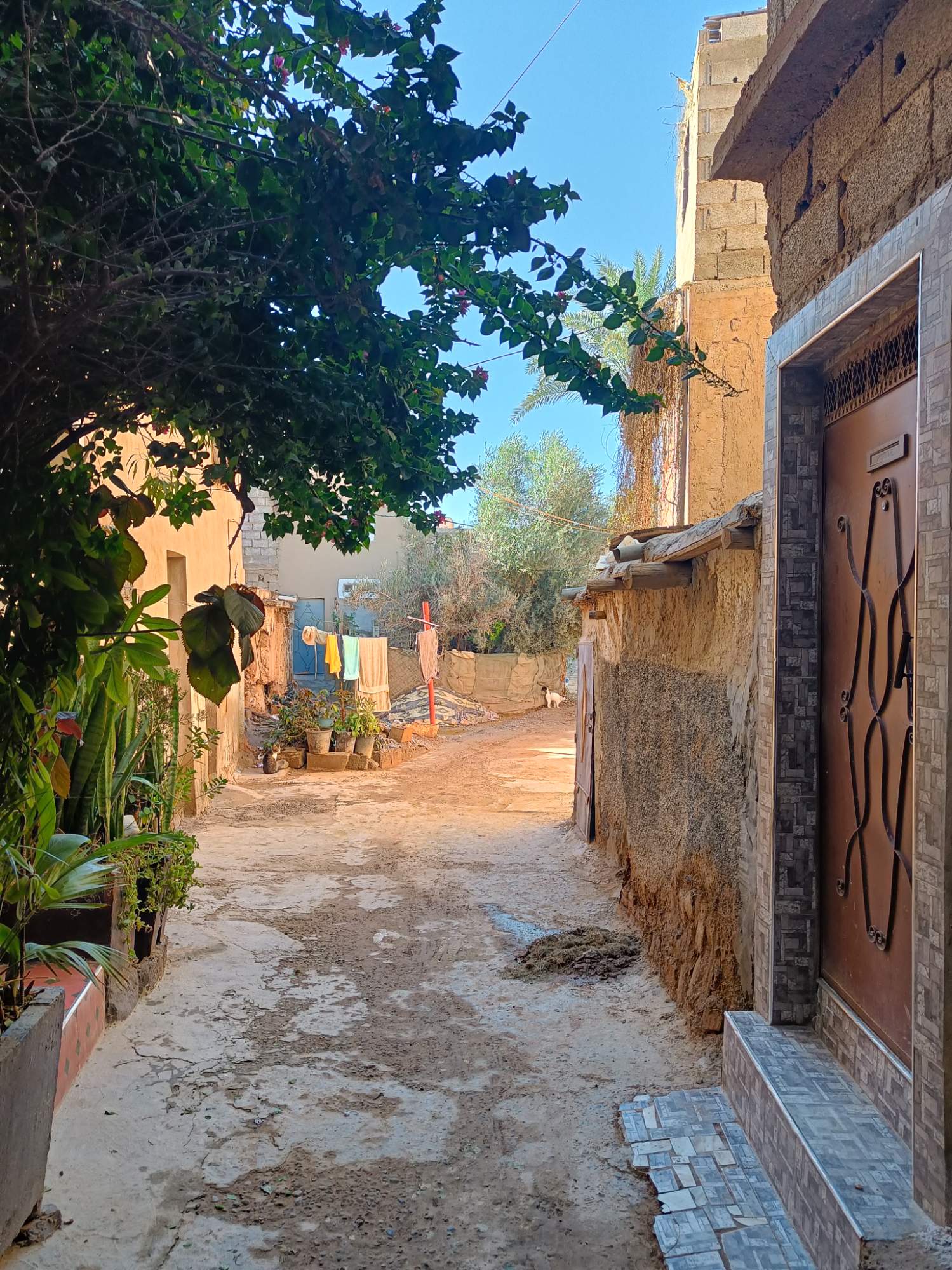 Ce matin, je prends mon temps. J’ai traîné jusqu’à 9h au lit, déjà pour mettre à jour le blog que je n’ai pas eu le courage de faire hier soir, ensuite, rien de spécial à la faire, à part prendre un petit déjeuner local. J’ai voulu aller place Assarag à un endroit que j’avais repéré hier mais pas de bol, sol affaissé devant la boutique, travaux en cours, sûrement électricité et eau coupées, les tables étaient rangées et ça me semblait pas près d’ouvrir. Je suis donc revenue sur mes pas à un endroit où j’avais repéré une dame qui petrissait des pains et les faisait cuire devant toi. La perspective de ce bon pain chaud m’a fait saliver, j’ai commandé un thé et de l’amlou et je me suis régalée. Je l’ai mangé en entier par gourmandise. 1.7€ le petit déjeuner de compétition. En même temps, j’avais pas mangé hier soir…