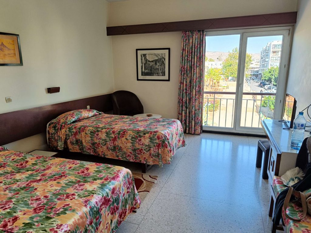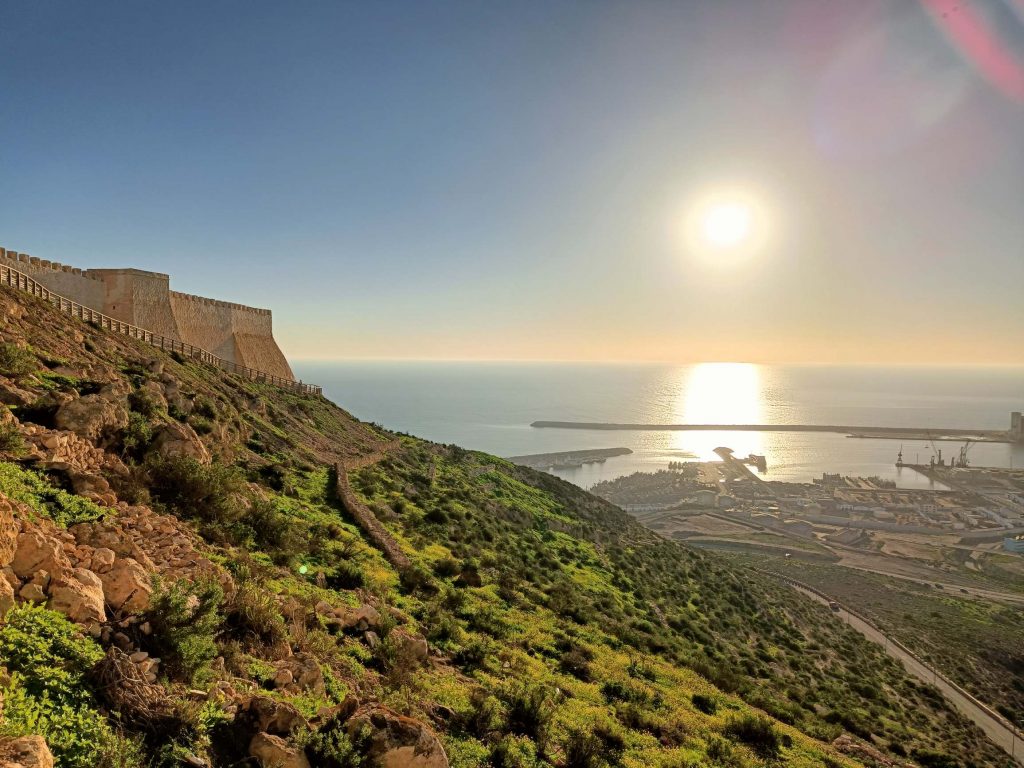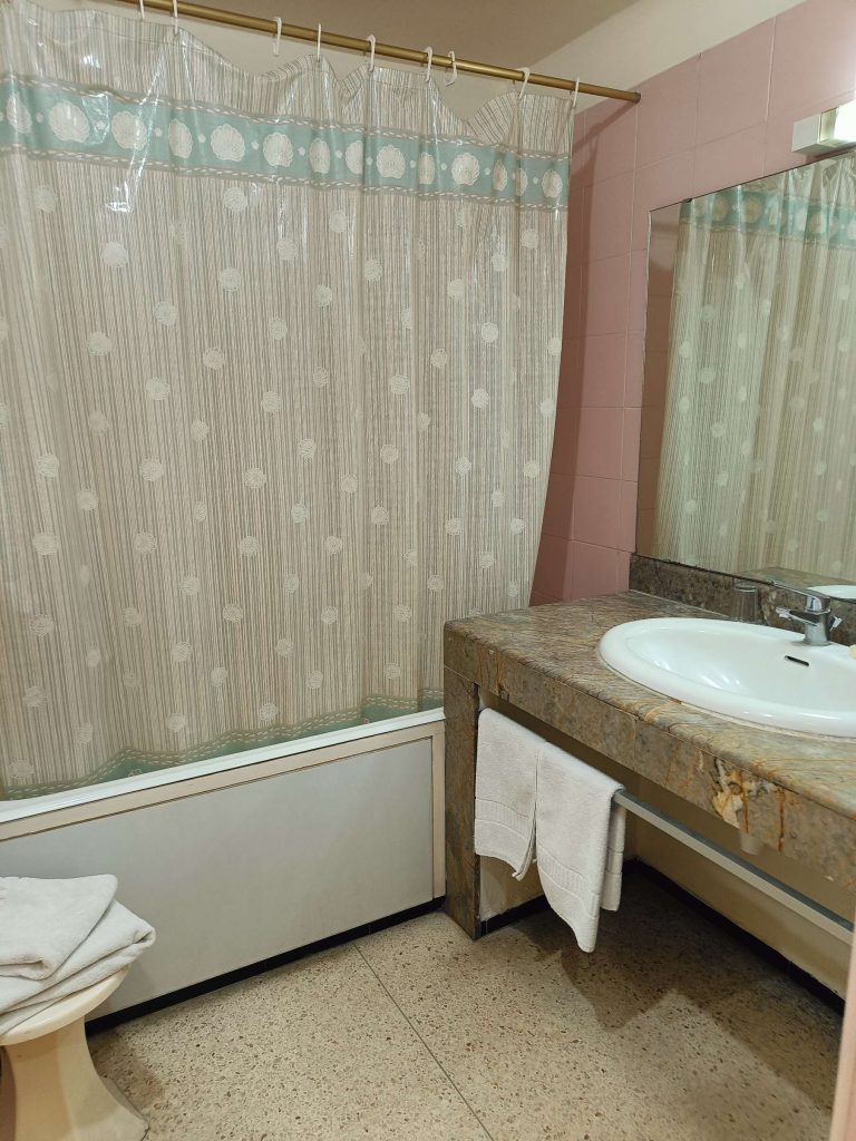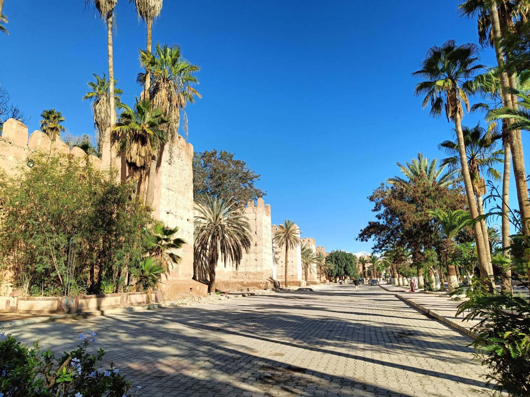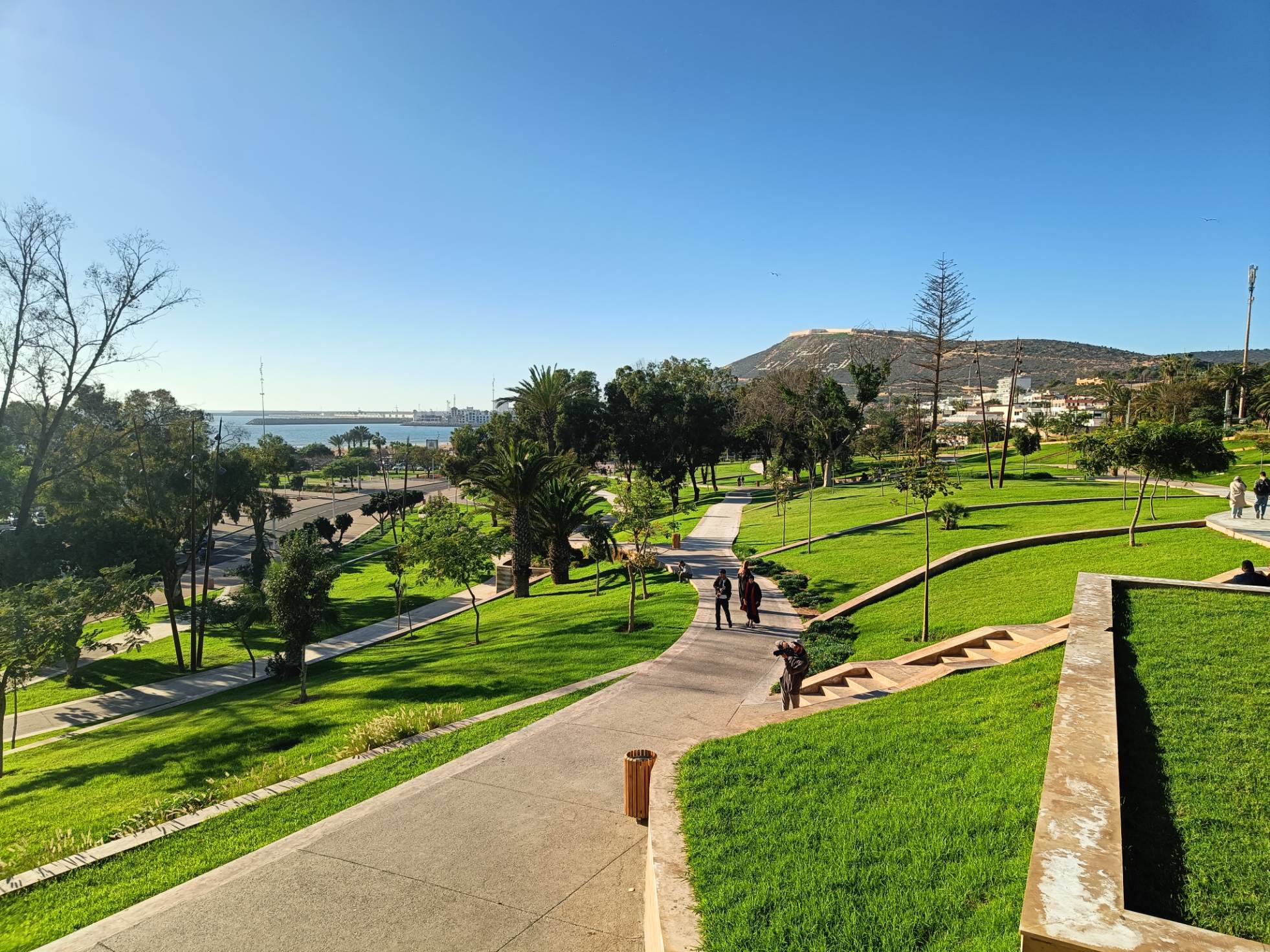 Trajet rapide, plus prudent qu’à l’aller, à la radio, on a même eu des spots de pub marocains sur la politesse, comme quoi dire bonjour à un touriste, c’est renvoyer une bonne image du Maroc. D’ailleurs tout le long du séjour, on m’a dit : bonjour, bienvenue au Maroc avec le sourire. C’était un accueil très agréable. A l’arrivée au parking Abbatoir, j’ai encore marché une vingtaine de minutes pour arriver à mon dernier hôtel, avec piscine, plus touristique que les précédents mais un peu dans son jus au niveau des chambres. Je suis repartie marcher sur la corniche, à la base je voulais juste manger une glace et voir le coucher du soleil mais je suis rentrée à l’Office du Tourisme, où j’ai dérangé les agentes d’accueil qui discutaient entre elles. Vraiment pas au top les nanas. J’ai demandé s’il y avait un bus pour aller à la Kasbah, visiblement non, mais finalement oui ‘au pied de la montagne’, elle m’a annoncé 15mn à pieds, alors que c’était plus 30 mn en marchant vite ! Une fois arrivée ‘au pied de la montagne’, le bus ne semblait pas vouloir partir alors j’ai demandé à un taxi combien il me prenait pour aller en haut. 20 dirhams, j’ai un peu tiqué, il m’a dit 15, si on peut emmener la grand mère qui attend avec tous ces sacs. Tope là.